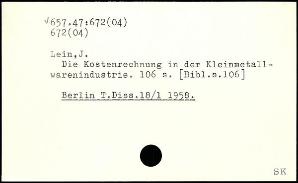 Die Kostenrechnung in der Kleinmetallwarenindustrie.