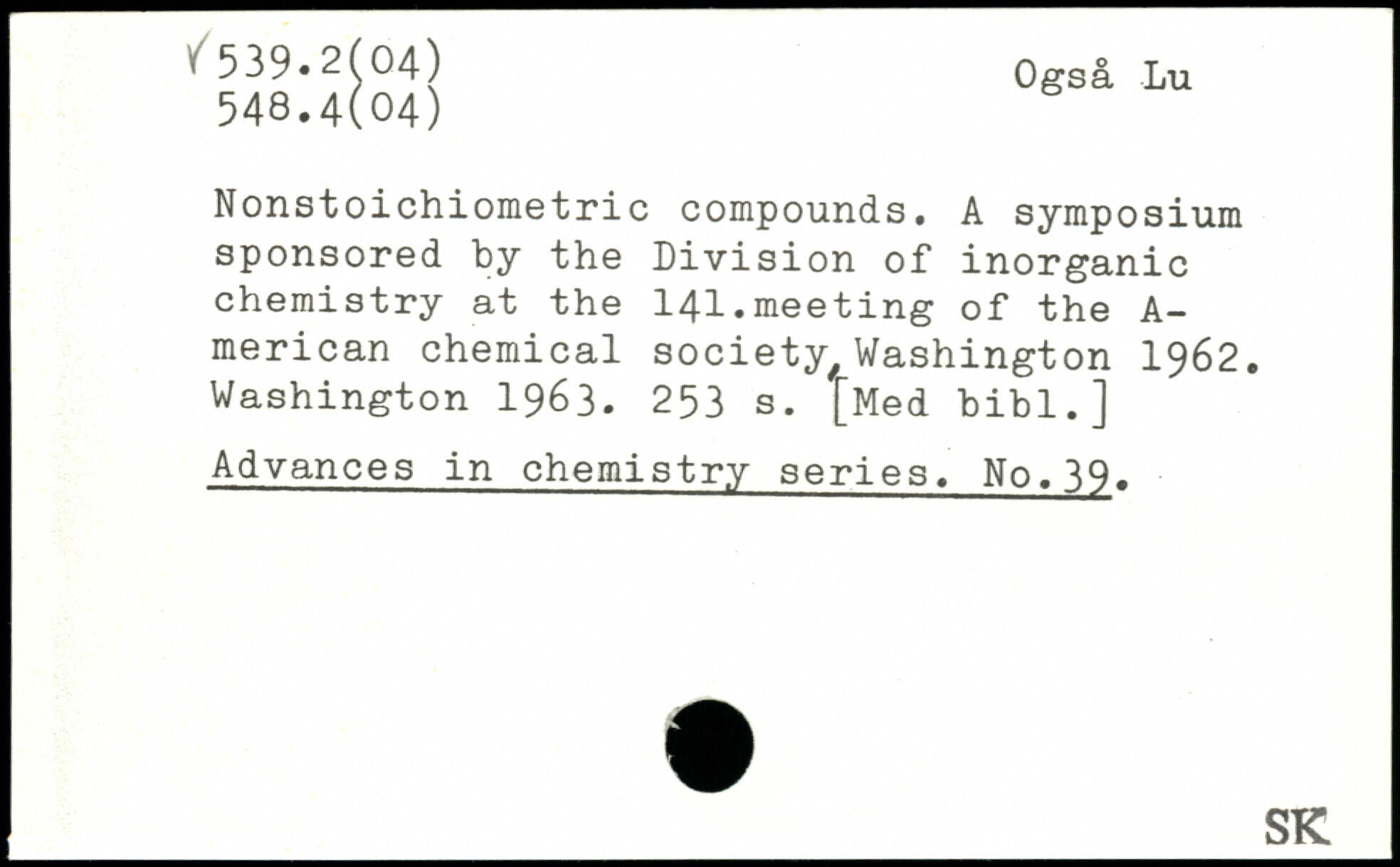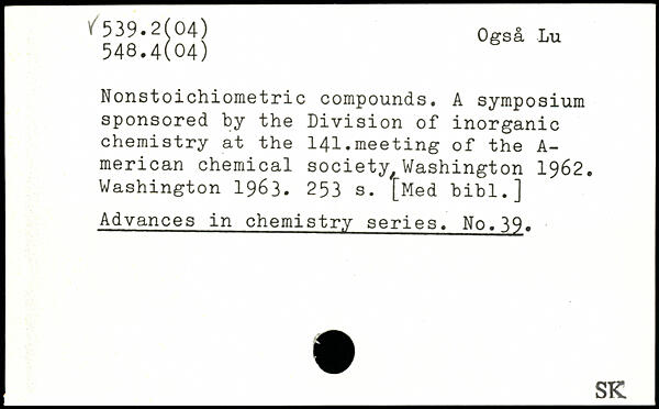 Nonstoichiometric compounds. A symposium sponsored by the Division of inorganic chemistry at the 141.meeting of the A-merican chemical society/