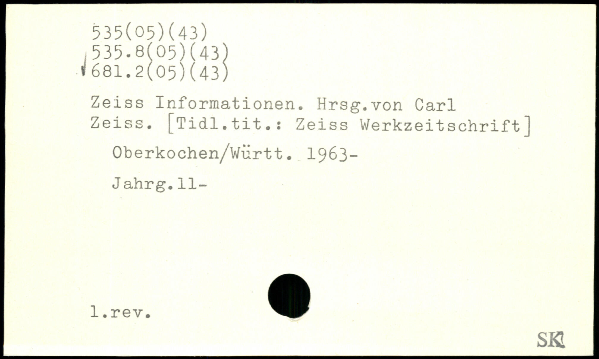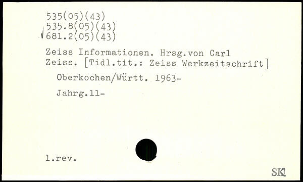 Zeiss Informationen. Hrsg.von Carl Zeiss. [Tidl.tit.: Zeiss Werkzeitschrift] Oberkochen/Württ. 1963- Jahrg.11- _SKI