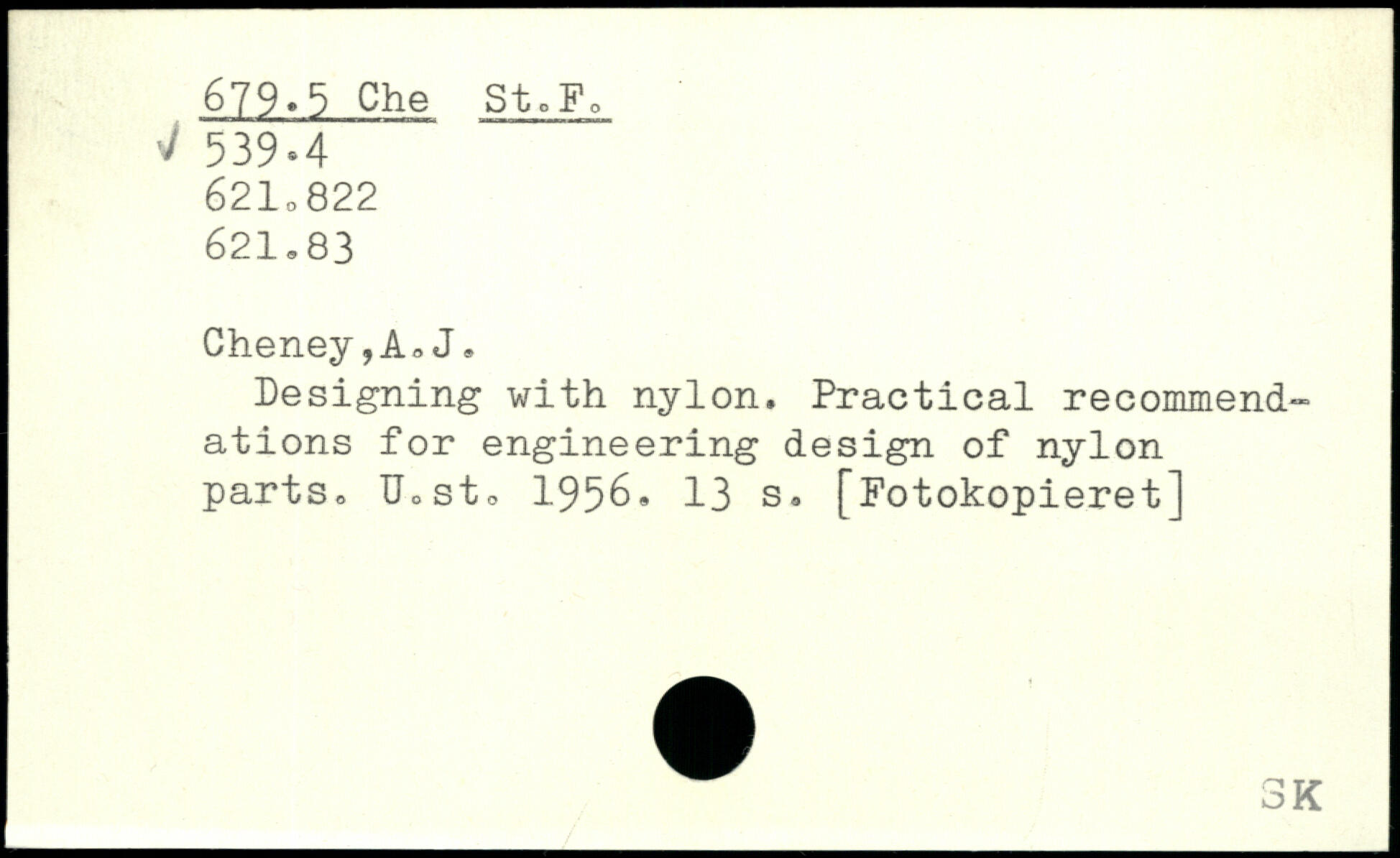 Designing with nylon. Practical recommendations for engineering design of nylon parts, Ucst, 1956.