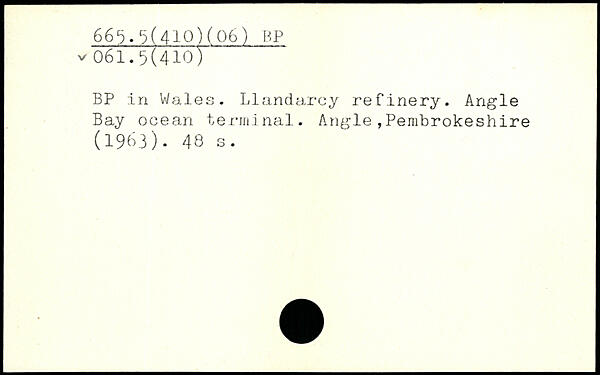 BP in Wales. Llandarcy refinery. Angle Bay ocean terminal. Angle Pembrokeshire (1963 ).