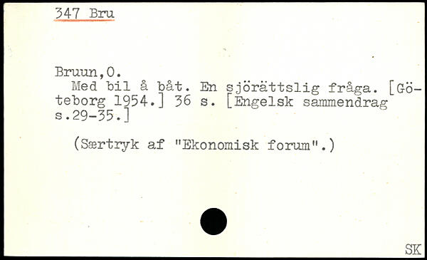 Med bil å båt. En sjörättslig fråga. [Göteborg 1954.]