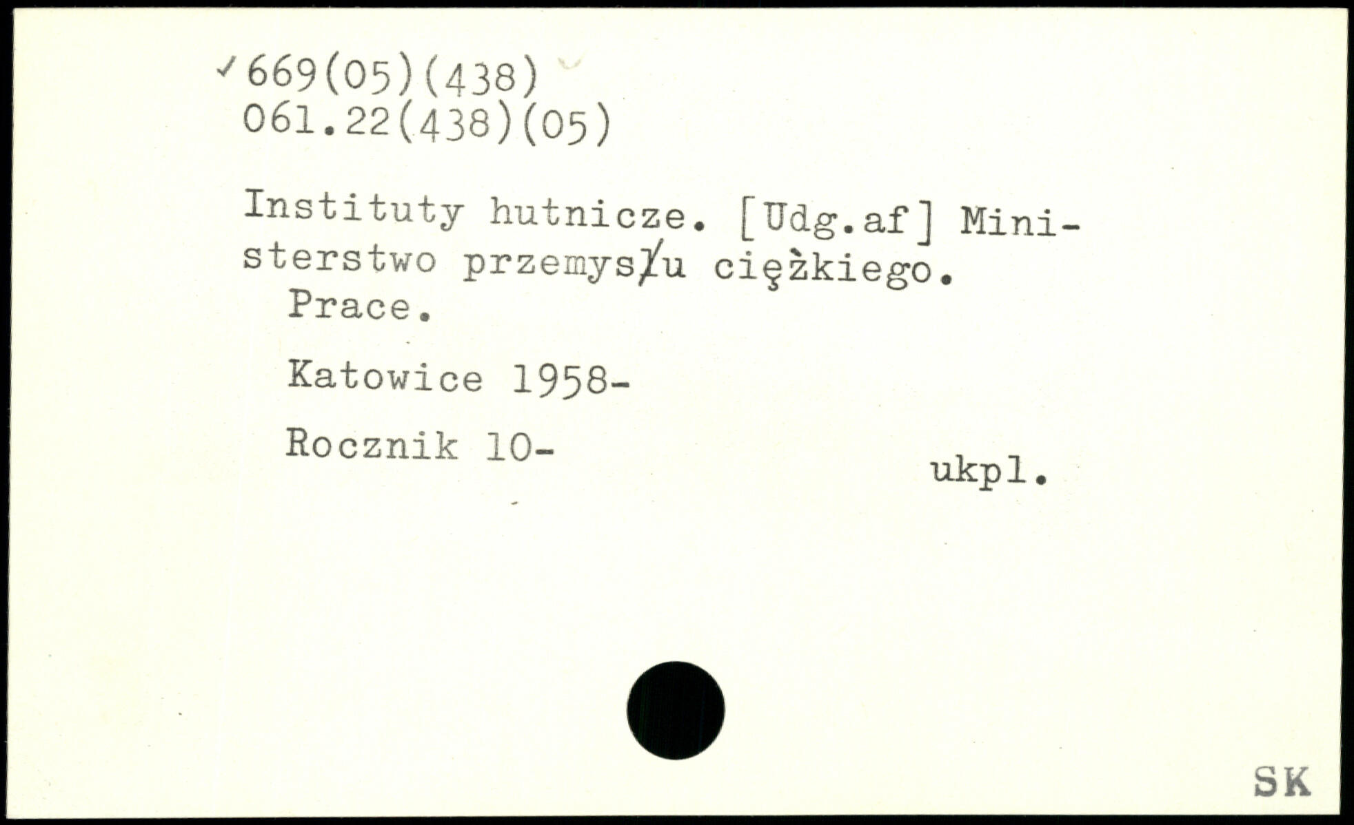 Instituty hutnicze. [Udg.af] Mini-sterstwo przemys/u ci§zkiego. Prace. Katowice 1958- Rocznik 10- , n ukpl.