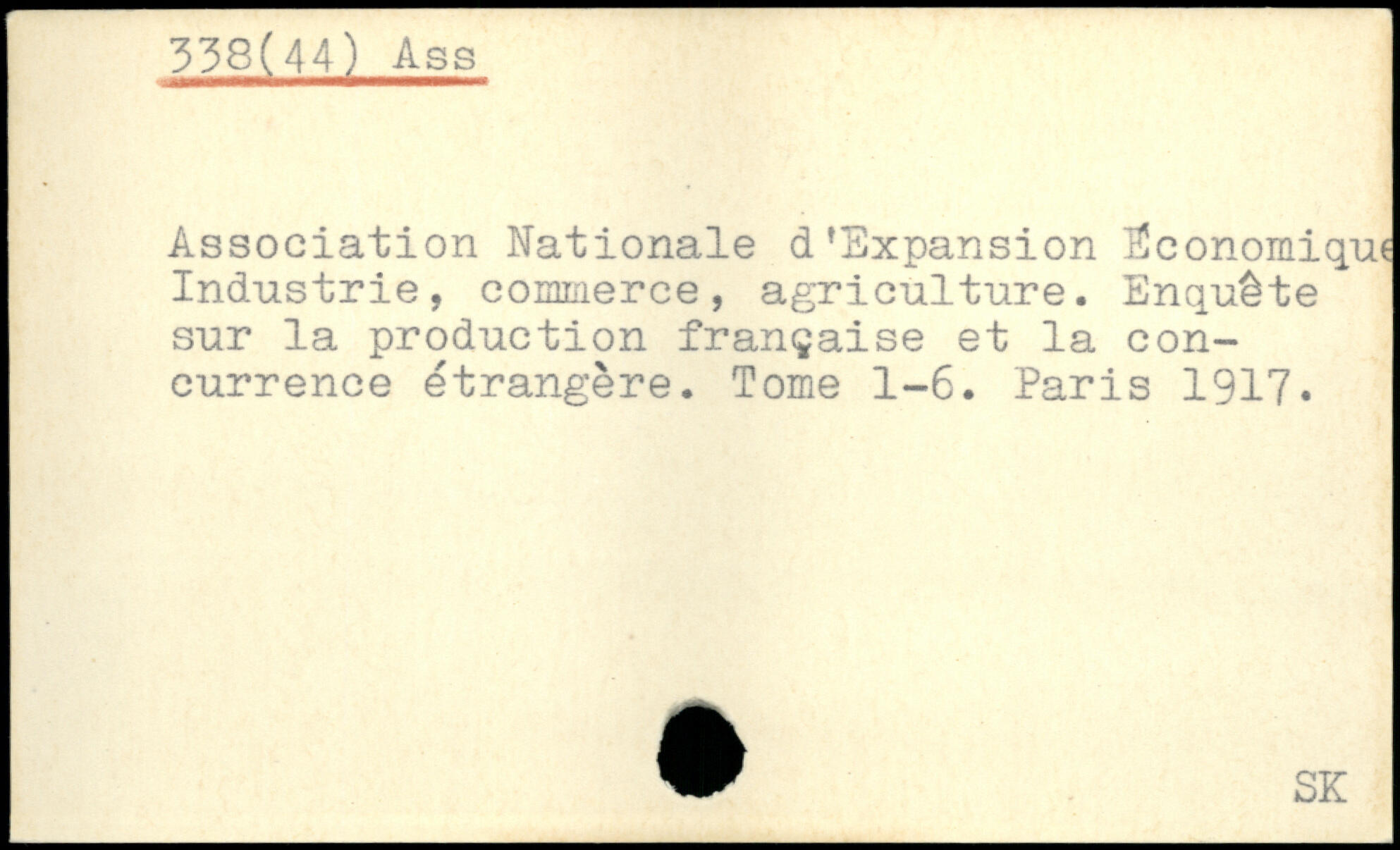 Association Nationale d’Expansion Economique Industrie, commerce, agriculture. Enquête sur la production française et la concurrence étrangère. Tome 1-6.