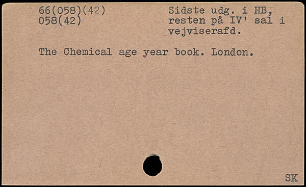 058(42; resten på IV' sal 1 vejviserafd. The Chemical age year book. London, ___SK