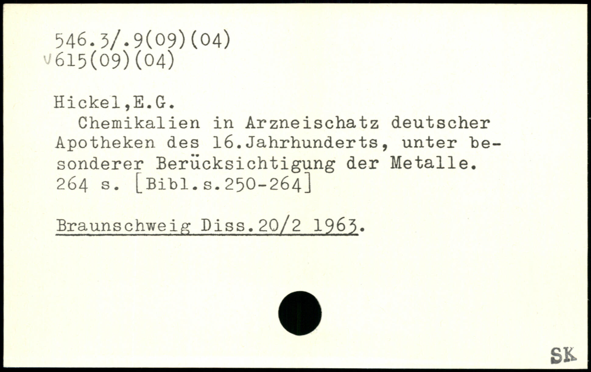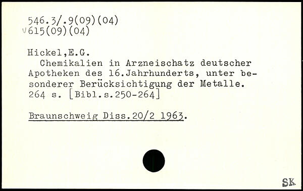 Chemikalien in Arzneischatz deutscher Apotheken des 16.Jahrhunderts, unter besonderer Berücksichtigung der Metalle.