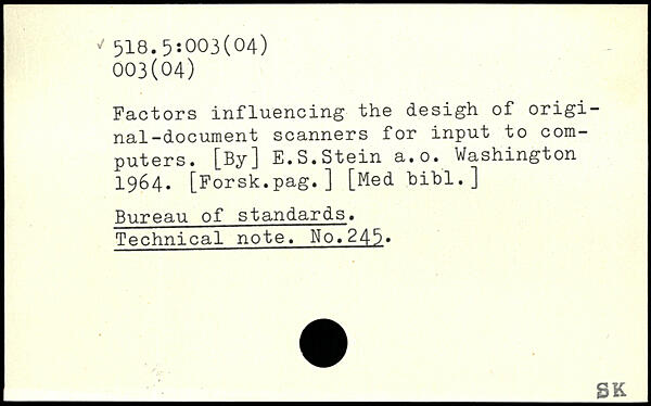 Factors influencing the desigh of original-document scanners for input to computers. [By] E.S.Stein a.o.