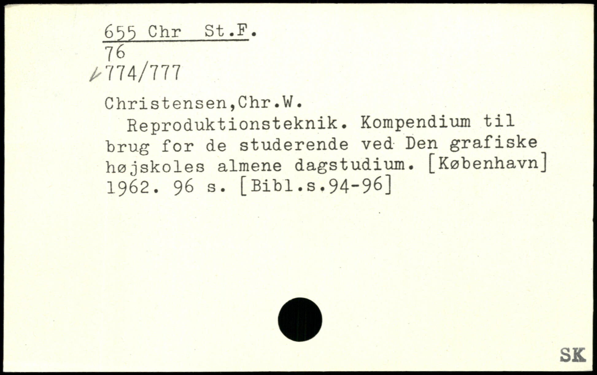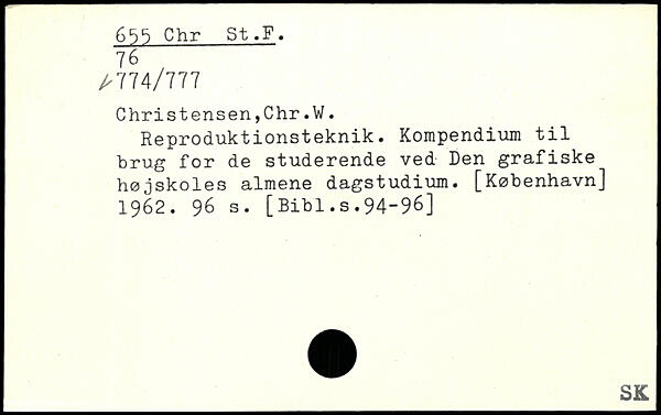 Chr St.F. 76 / /- 774/777 Christensen,Chr.W. Reproduktionsteknik. Kompendium til brug for de studerende ved Den grafiske højskoles almene dagstudium.