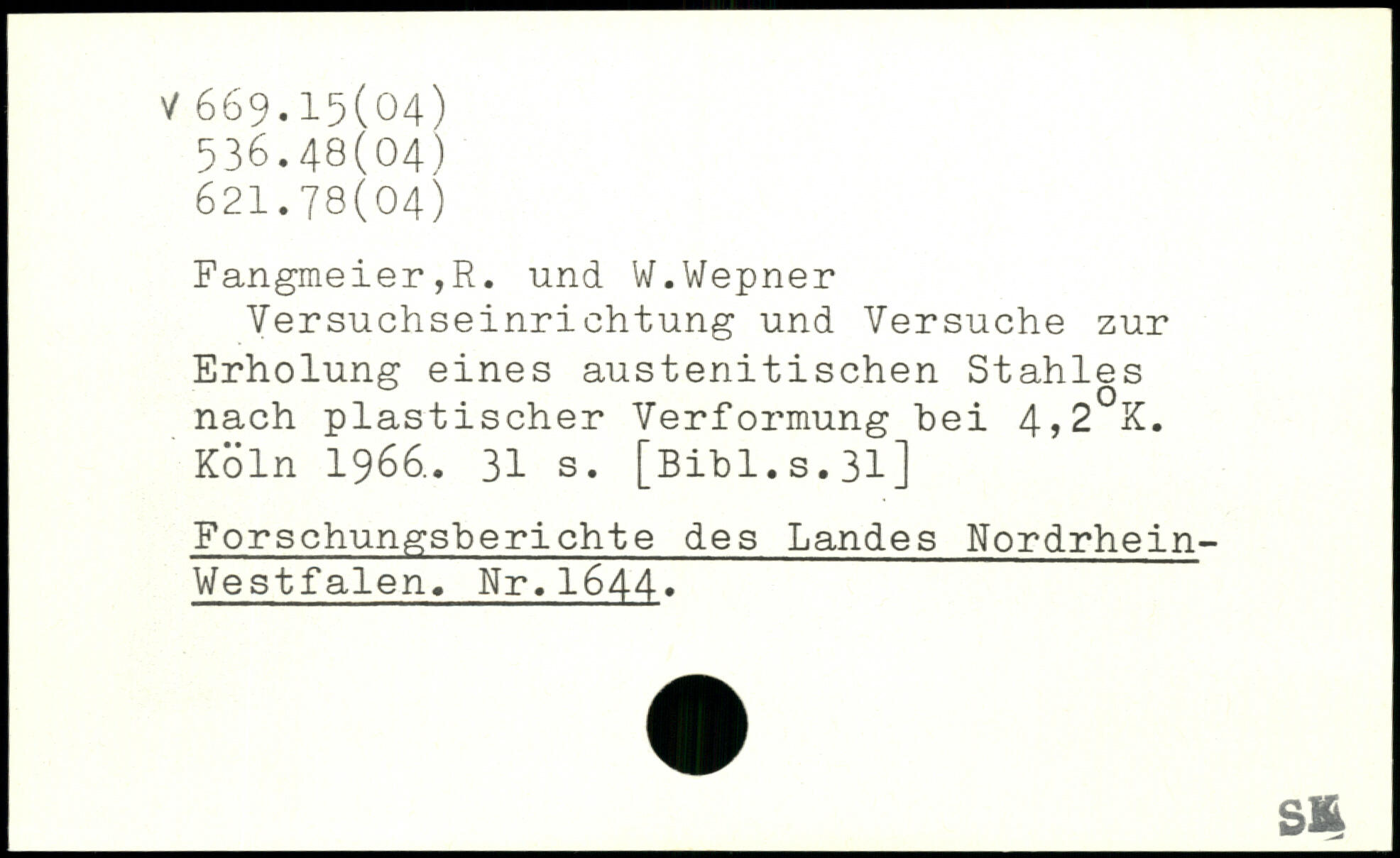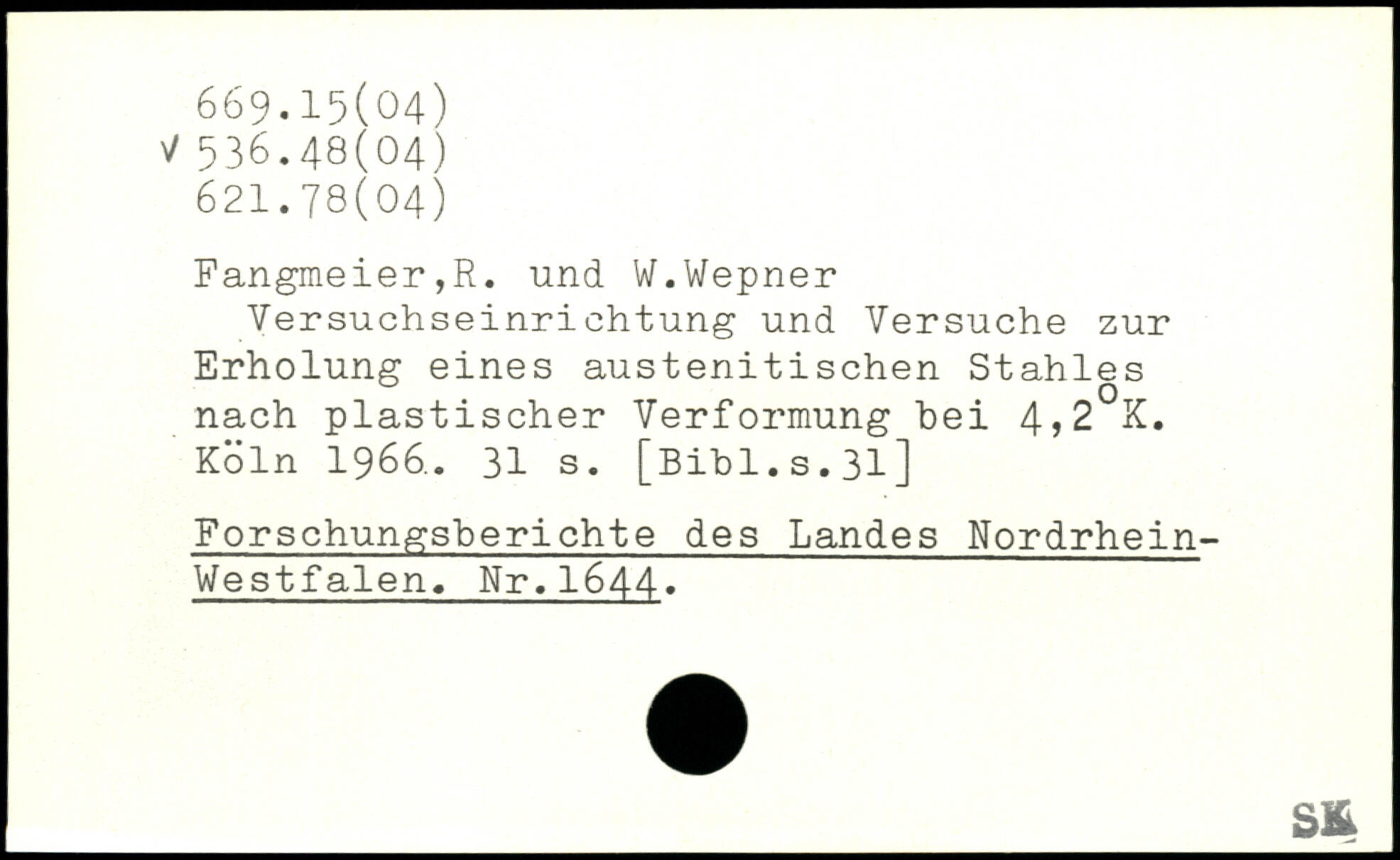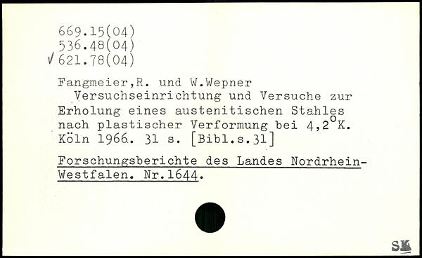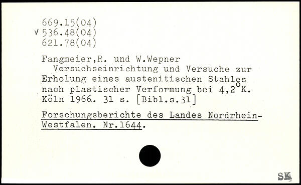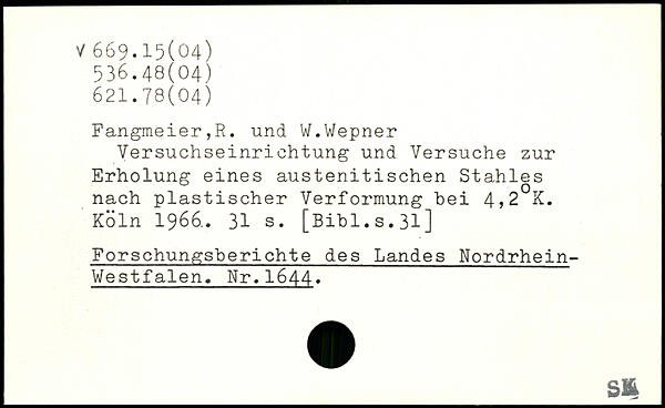 Versuchseinrichtung und Versuche zur Erholung eines austenitischen Stahles nach plastischer Verformung bei 4)2 K.
