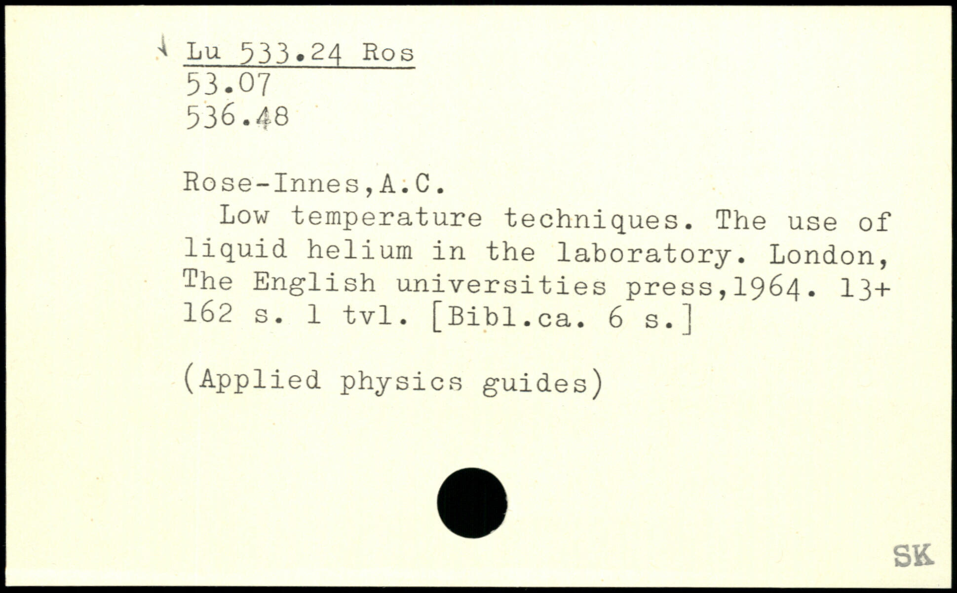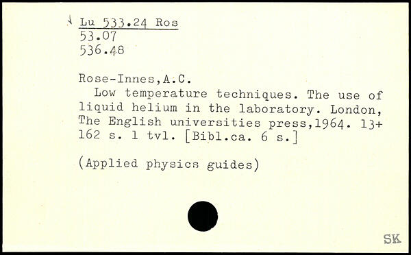 Low temperature techniques. The use of liquid helium in the laboratory.