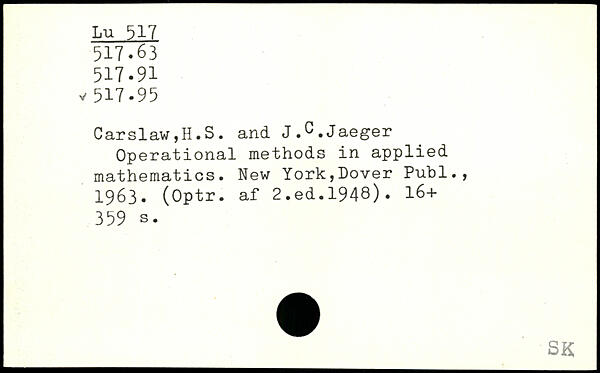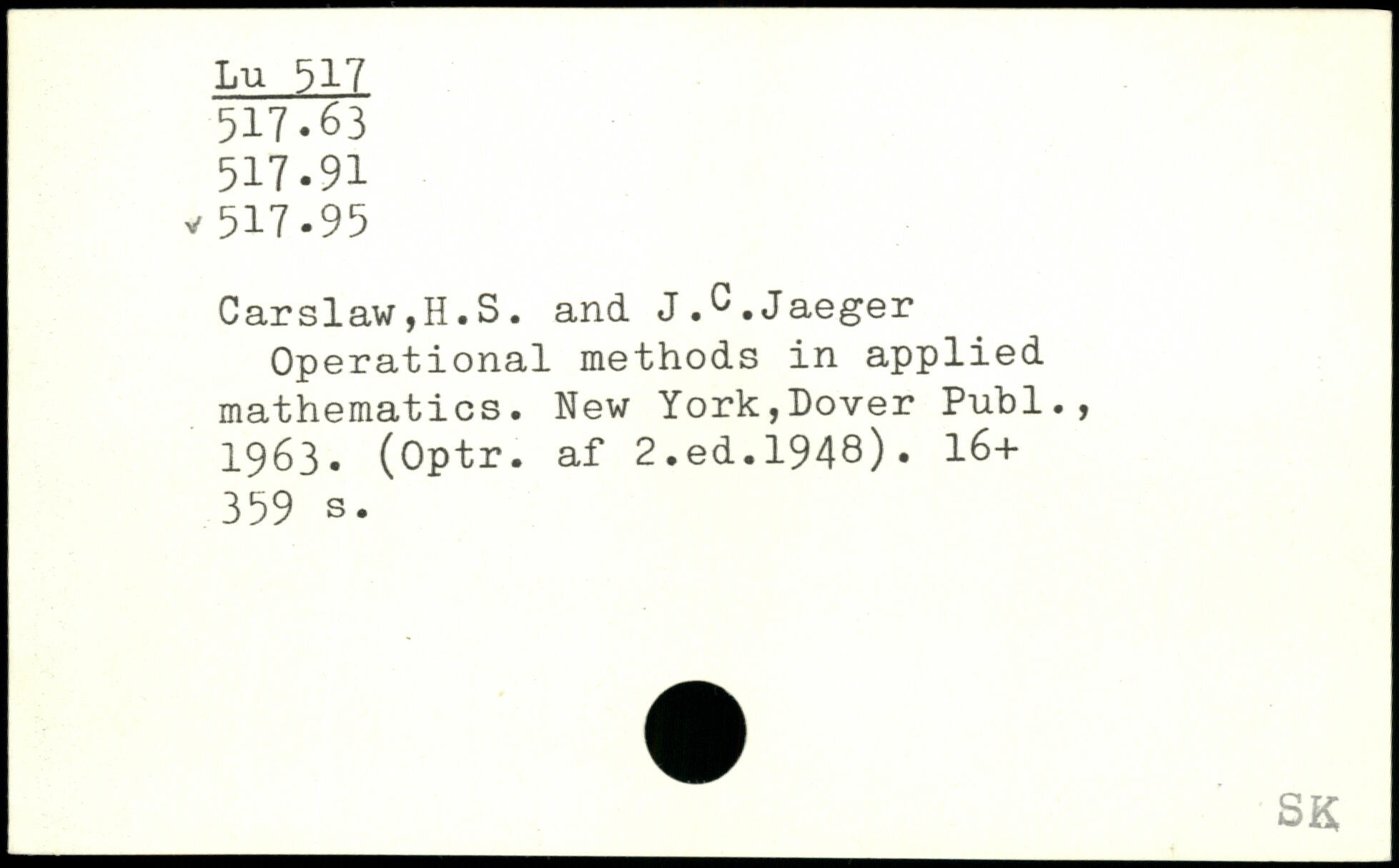 Carslaw,H.S. and J.^.Jaeger Operational methods in applied mathematics.
