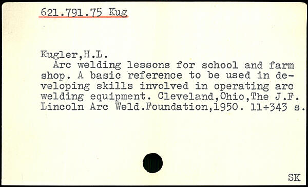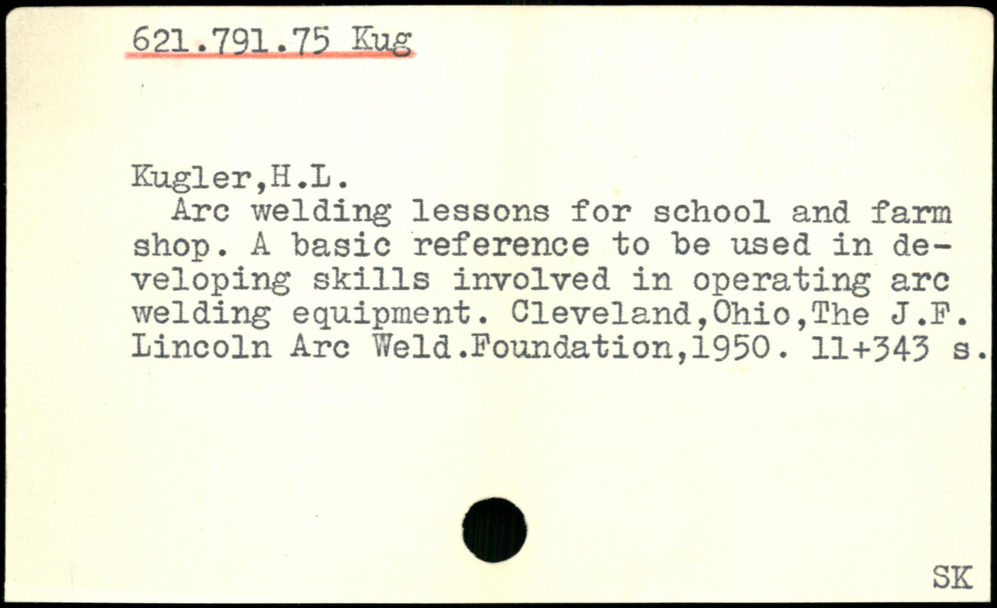 Arc welding lessons for school and farm shop. A basic reference to be used in developing skills involved in operating arc welding equipment. Cleveland,Ohio,The J.F. Lincoln Arc Weld.Foundation,1950.