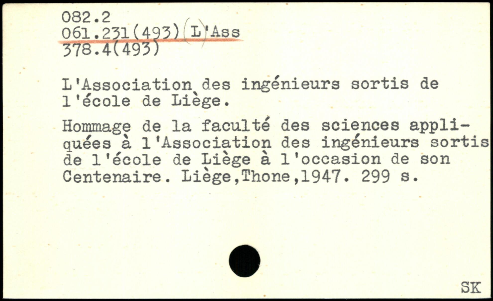 L'Association^des ingénieurs sortis de l'école de Liège. Hommage de la faculté des sciences appliquées à l'Association des ingénieurs sortis de l'école de Liège à l'occasion de son Centenaire. Liège,Thone,1947.
