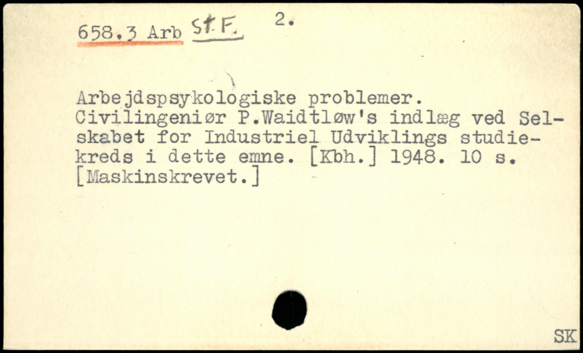 Arbejdspsykologiske problemer. Civilingeniør P.Waidtløw's indlæg ved Selskabet for Industriel Udviklings studiekreds i dette emne. [iCbh.] 1948.