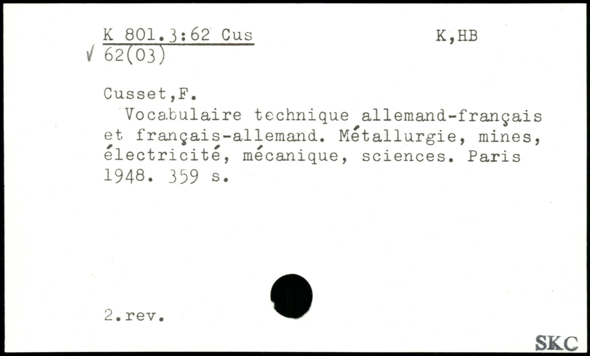 Vocabulaire technique allemand-français et français-allemand. Métallurgie, mines, électricité, mécanique, sciences.