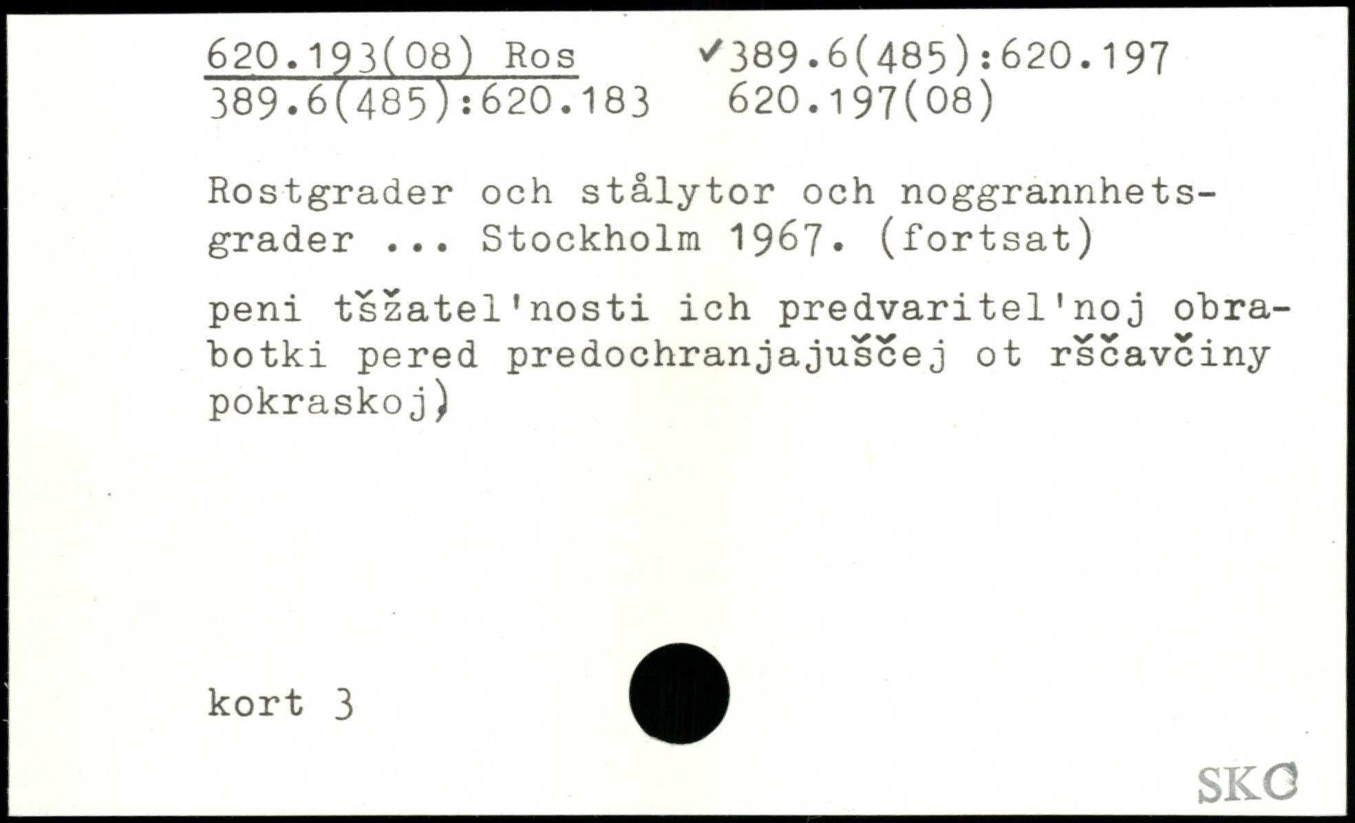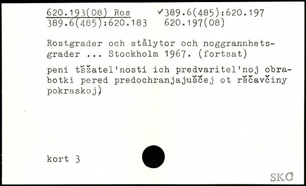 Rostgrader och stålytor och noggrannhets-grader ... Stockholm 19^7, (fortsat) peni tszatel'nosti ich predvaritel'noj ohra-hotki pered predochranjajuscej ot rscavciny pokraskoj)