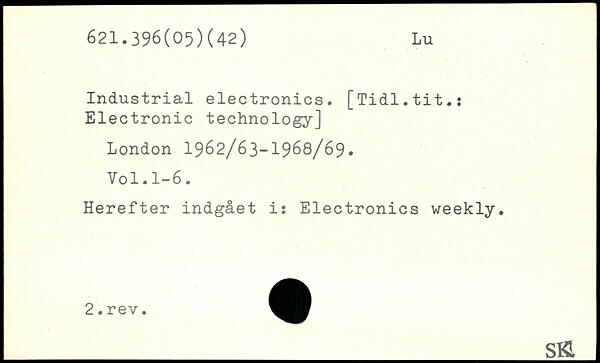 Industrial electronics. [Tidl.tit.î Electronic technology]