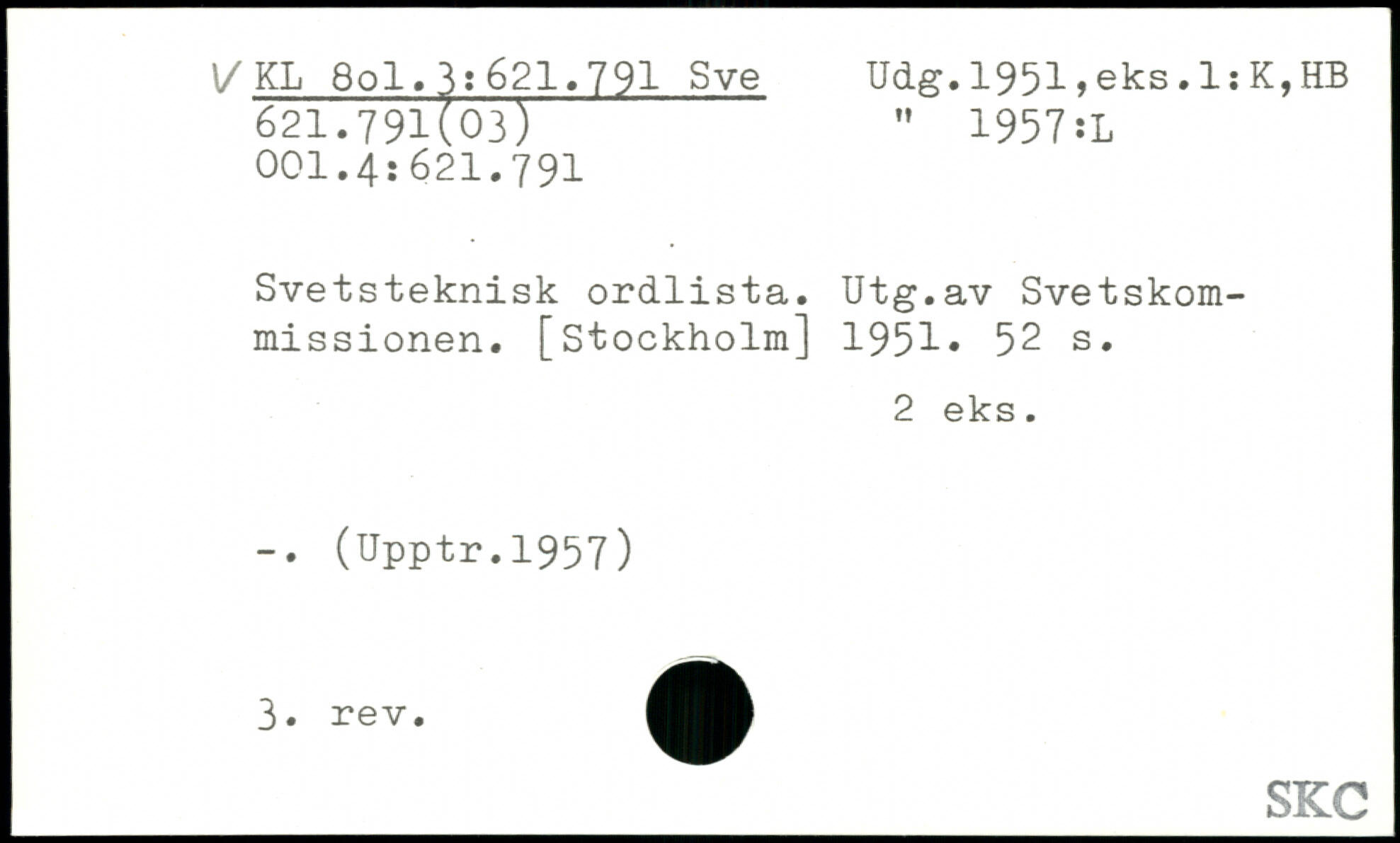 Svetsteknisk ordlista. Utg.av Svetskom-missionen.