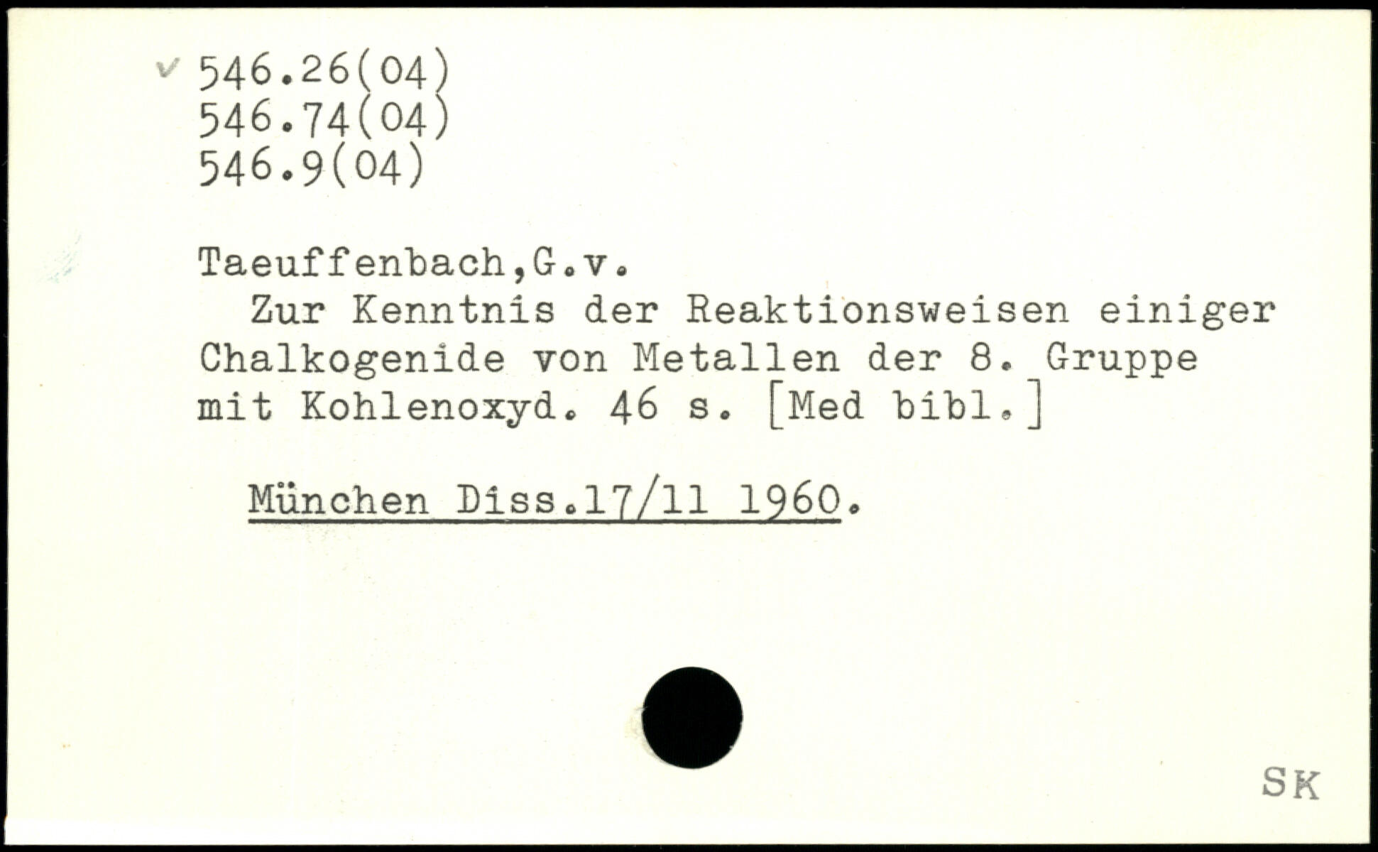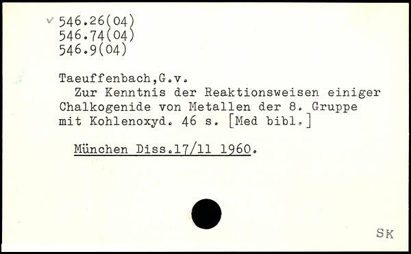 Zur Kenntnis der Reaktionsweisen einiger Chalkogenide von Metallen der 8. Gruppe mit Kohlenoxyd.