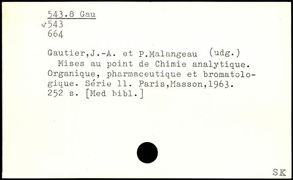 Mises au point de Chimie analytique. Organique, pharmaceutique et bromatolo-gique. Série 11.