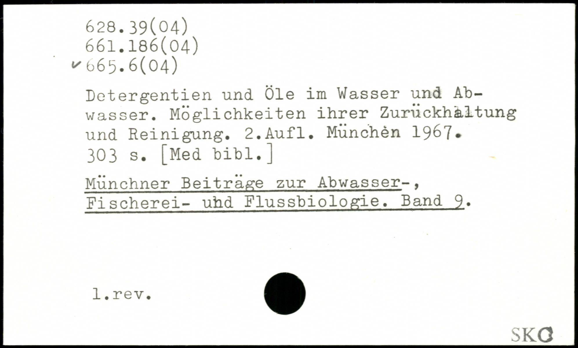 Detergentien und Öle im Wasser und Abwasser. Möglichkeiten ihrer Zurückhaltung und Reinigung.