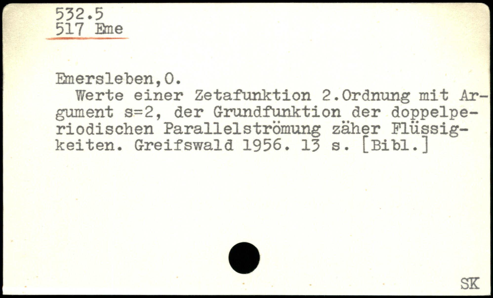 Werte einer Zetafunktion 2.Ordnung mit Argument s=2, der Orundfunktion der doppelperiodischen Parallel Strömung zäher Flüssigkeiten. Greifswald 1956.