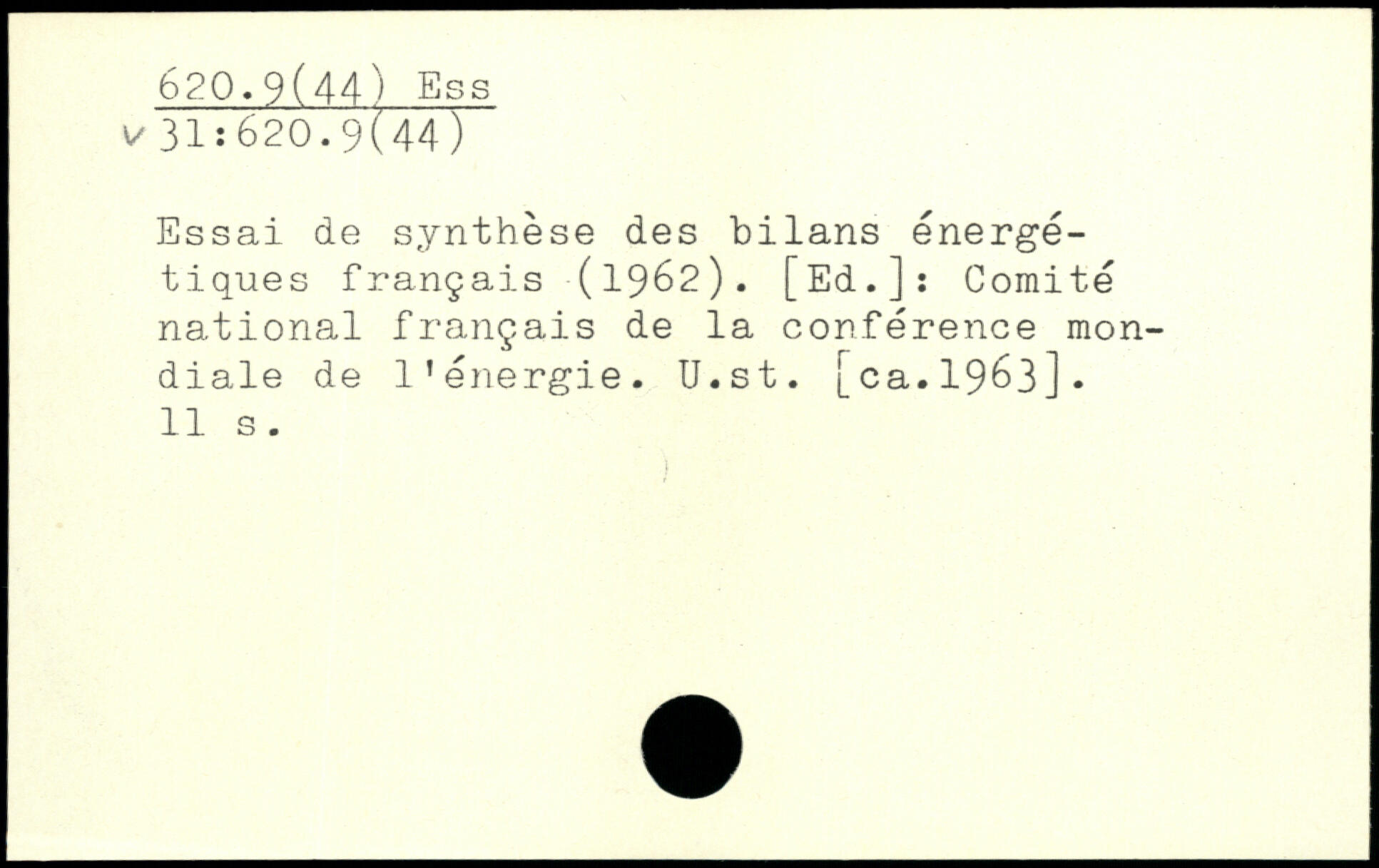 Essai de synthèse des bilans énergétiques français (1962). [Ed.]: Comité national français de la conférence mondiale de l’énergie. U.st. [ca.1963].