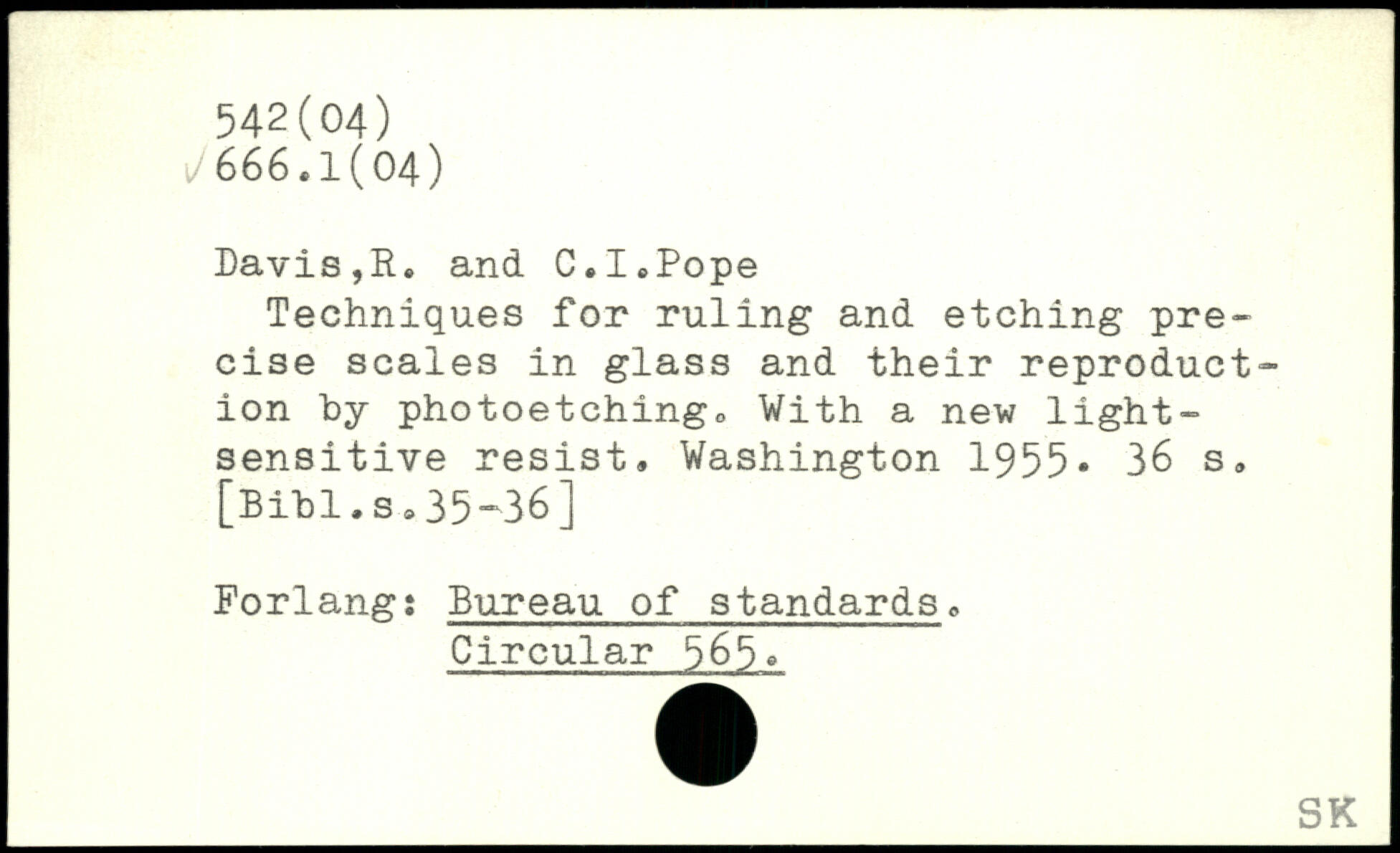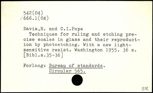 Davie,R. and C.I,Pope Techniques for ruling and etching precise scales in glass and their reproduction by photoetching, With a new light-sensitive resist