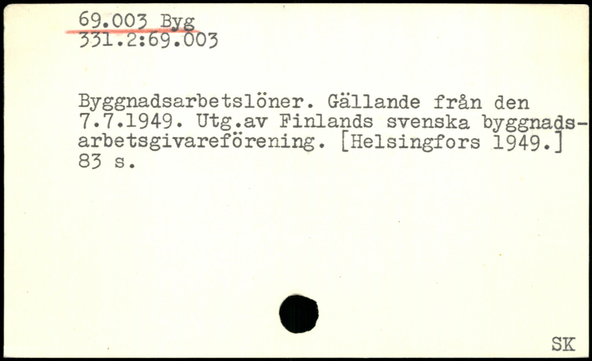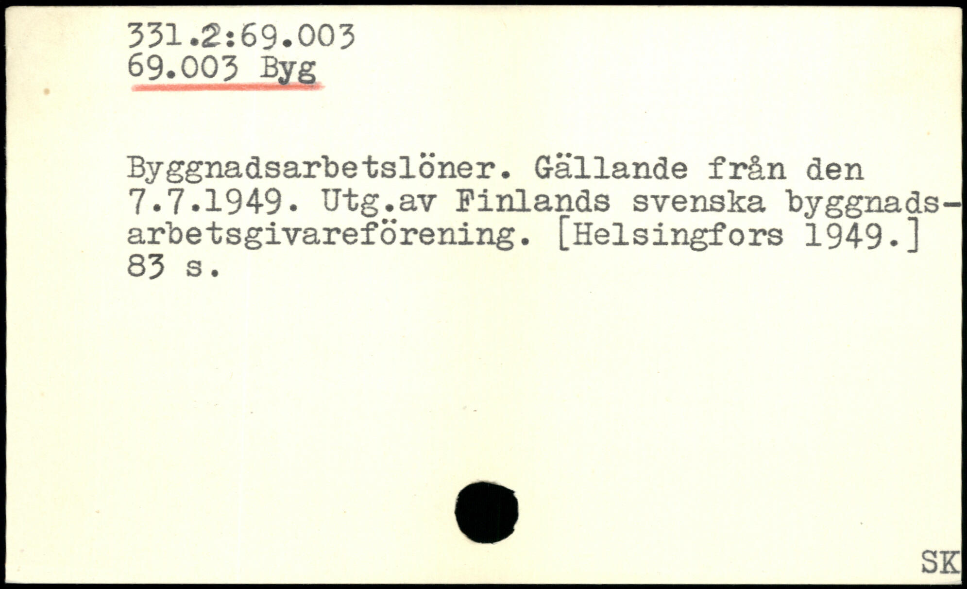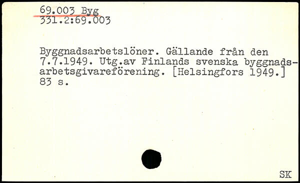 Byggnadsarbetslöner. Gällande från den 7.7.1949. Utg.av Finlands svenska byggnads-arbetsgivareförening.