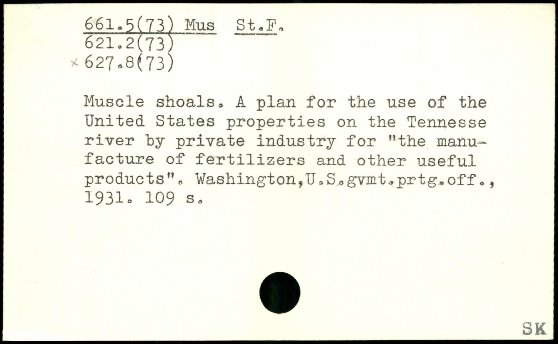 Muscle shoals. A plan for the use of the United States properties on the Tennesse river by private industry for "the manufacture of fertilizers and other useful products". Washington?U9S,,gvint,prtg,off ,, 1931o