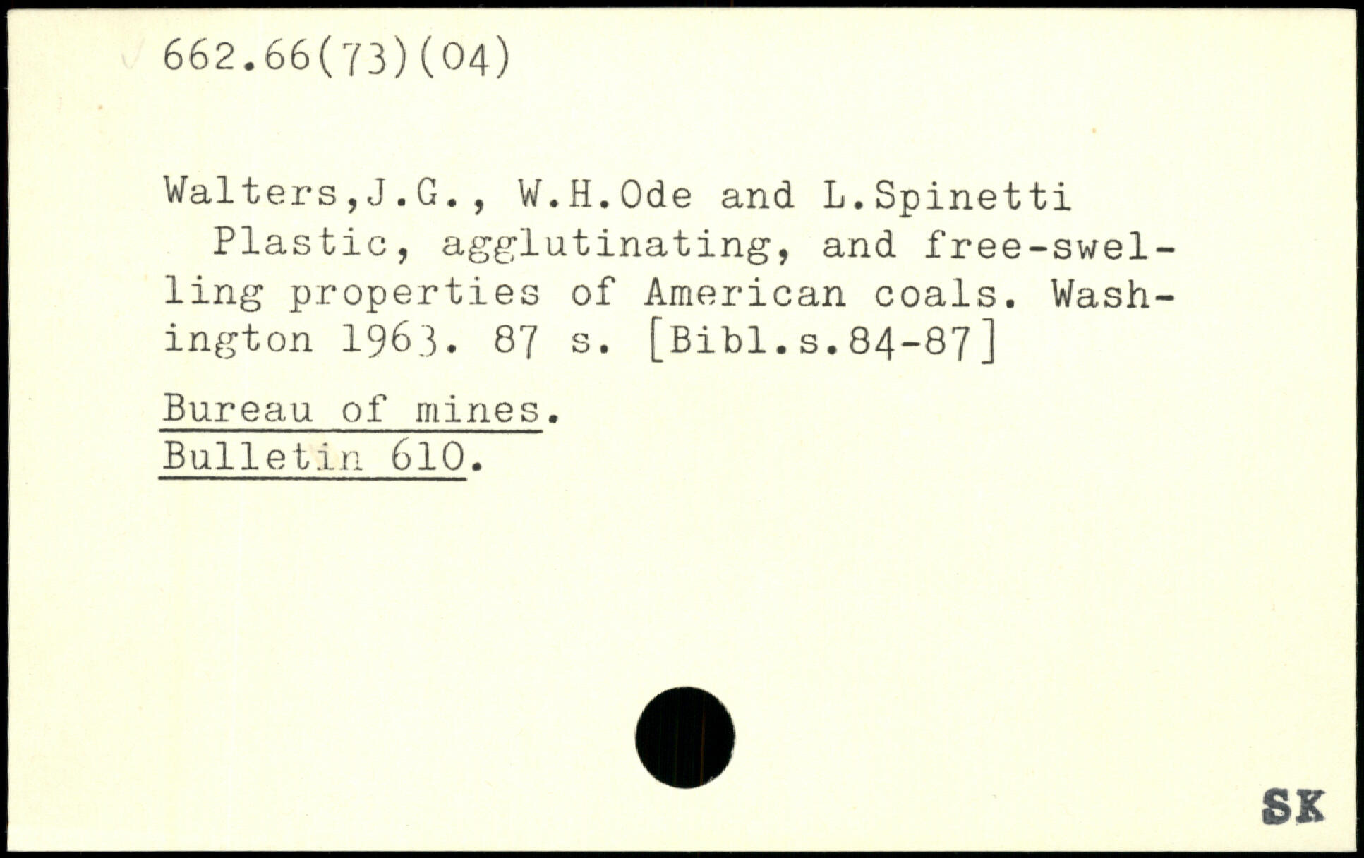 Walters,J.G., W.H.Ode and L.Spinetti Plastic, agglutinating, and free-swelling properties of American coals.