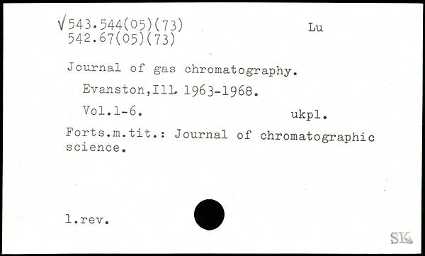 Journal of gas chromatography. Evanston,I1L 1963-1968.