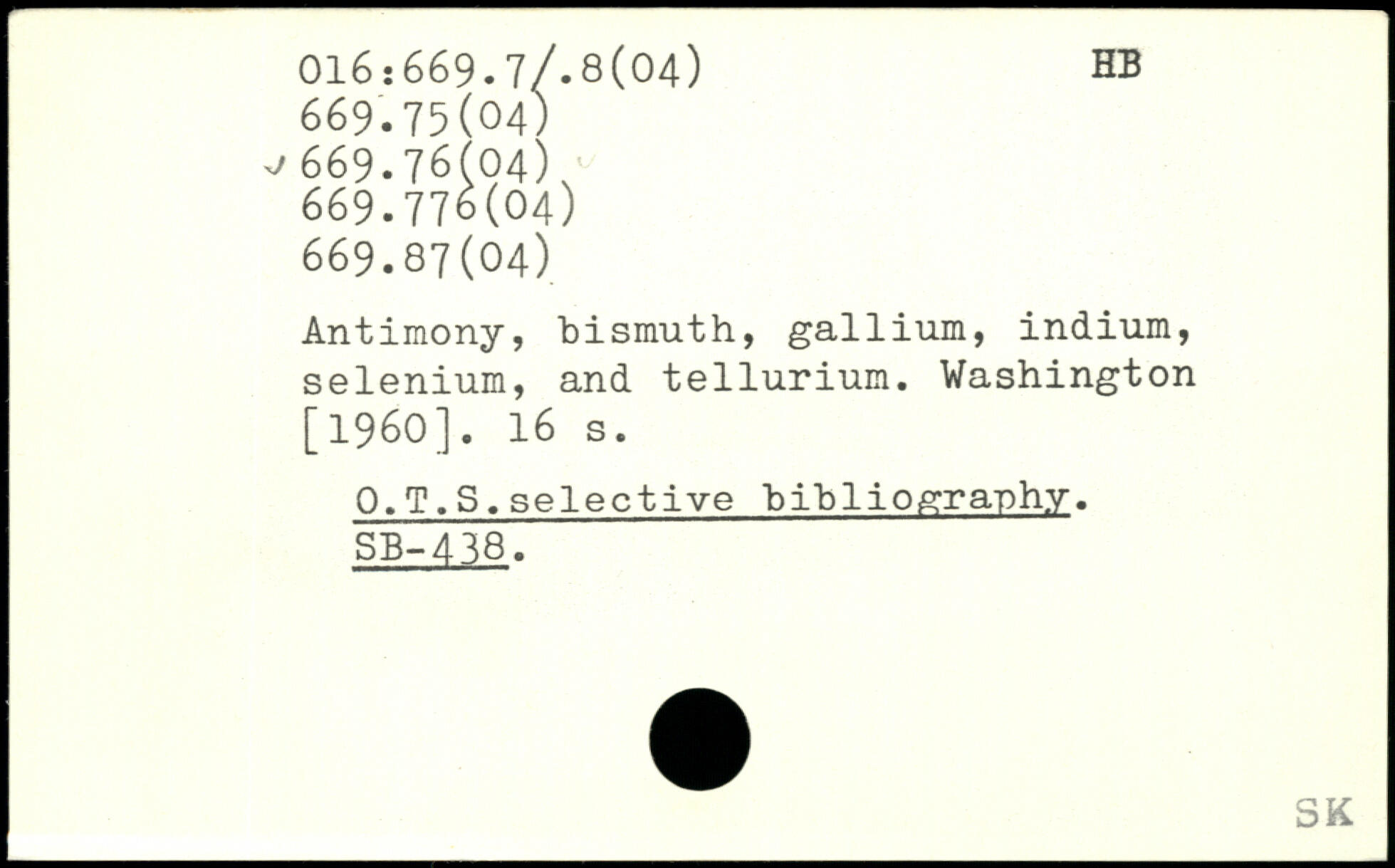 UDK: 016:669.7/.8(04), 669.75(04), 669.76(04), 669.776(04), 669.87(04)