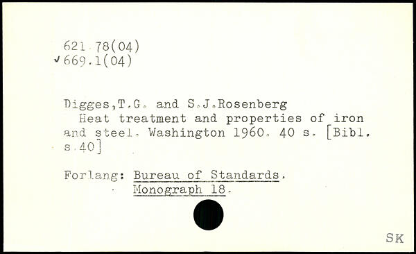 Digges^T.G. and SJ,Rosenberg Heat treatment and properties of iron and steel