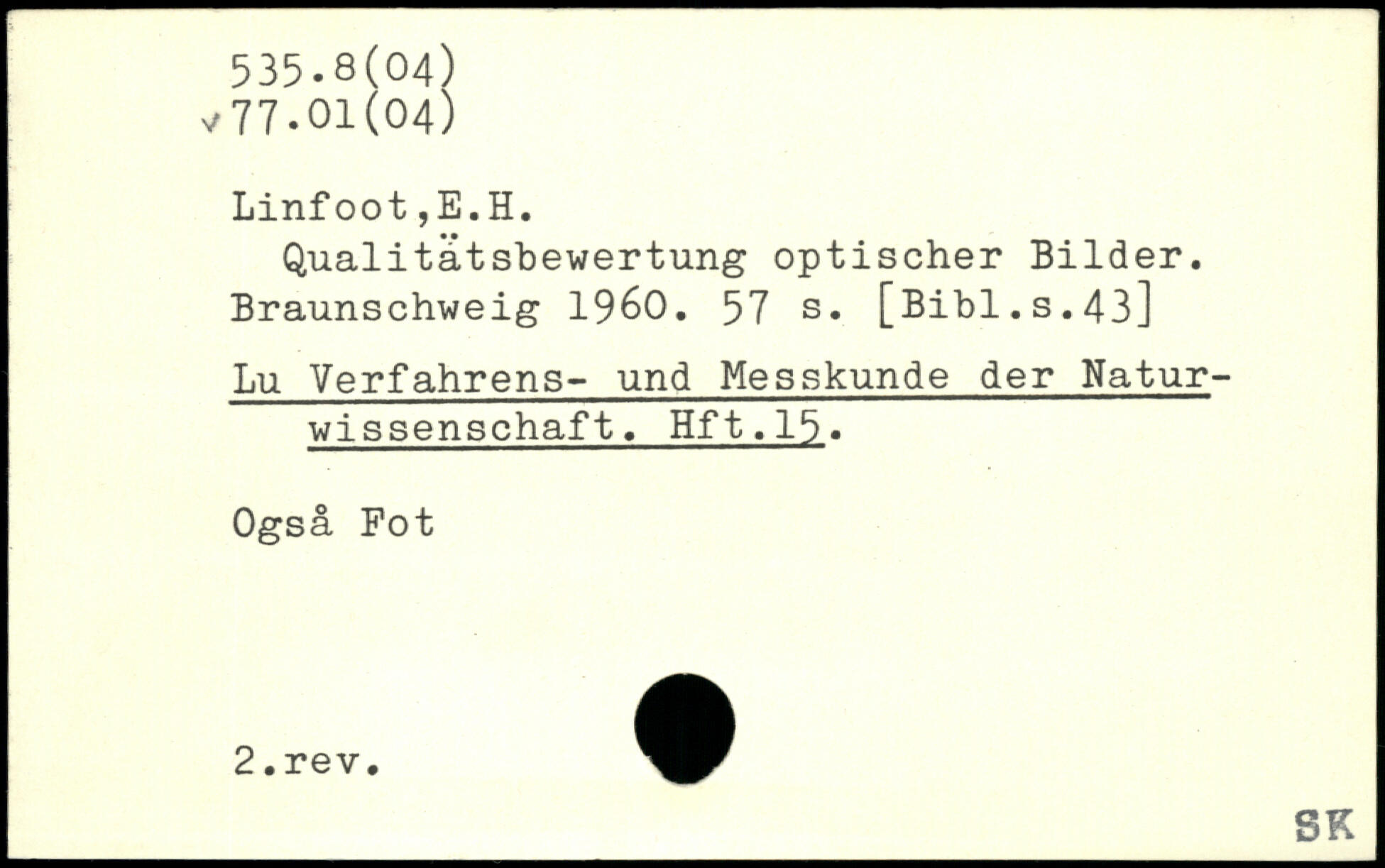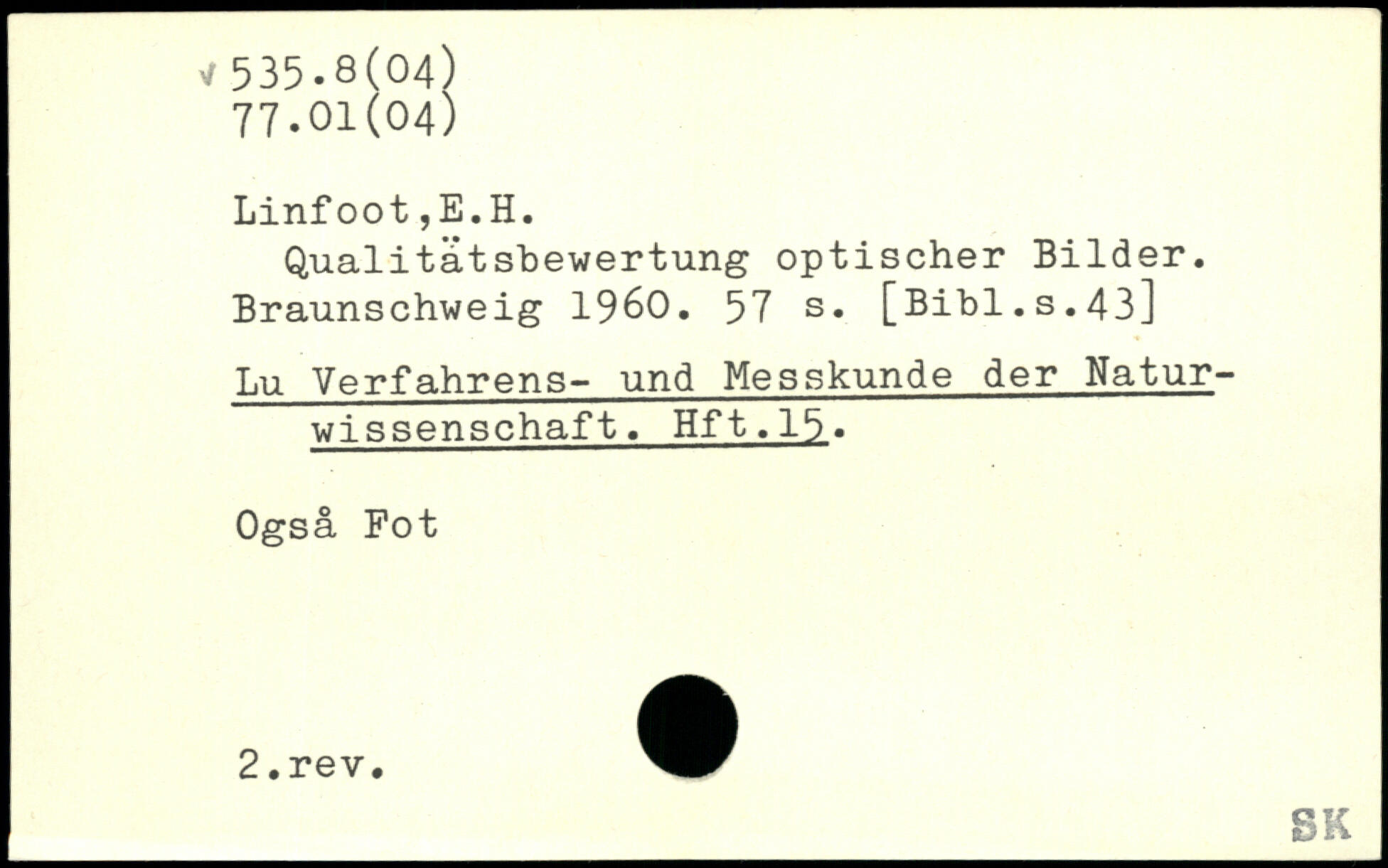 Qualitätsbewertung optischer Bilder. Braunschweig 1960.