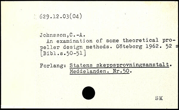 Johns son,C.-A. An examination of some theoretical propeller design methods. Göteborg 1962.