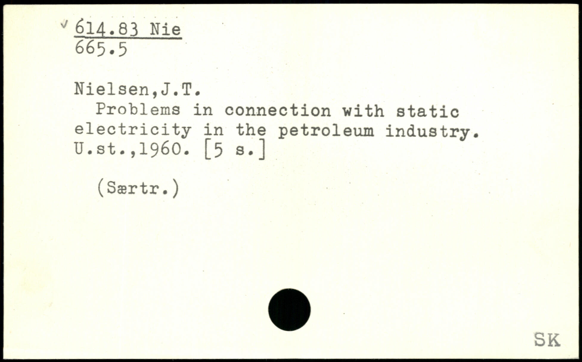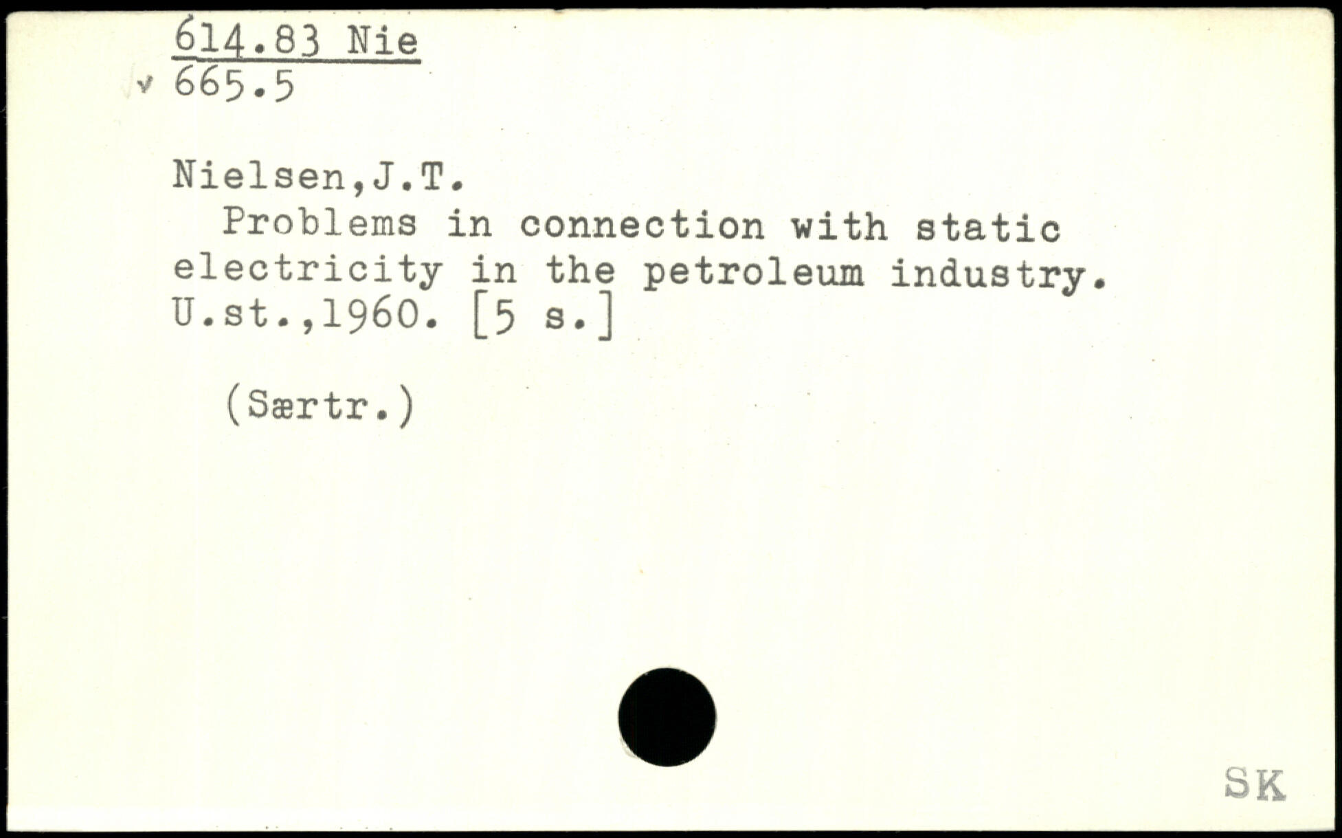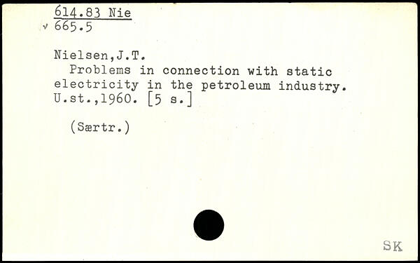 Problems in connection with static electricity in the petroleum industry. U.st.,1960. [