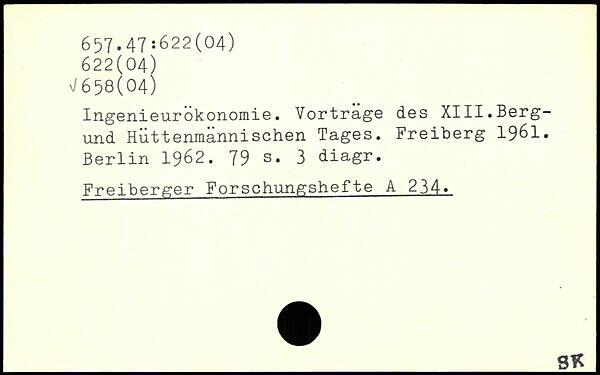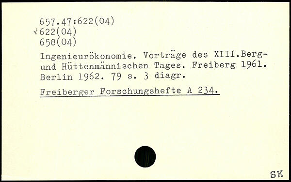IngenieurÖkonomie. Vortrage des XIII.Berg-und Hüttenmännischen Tages. Freiberg 1961.