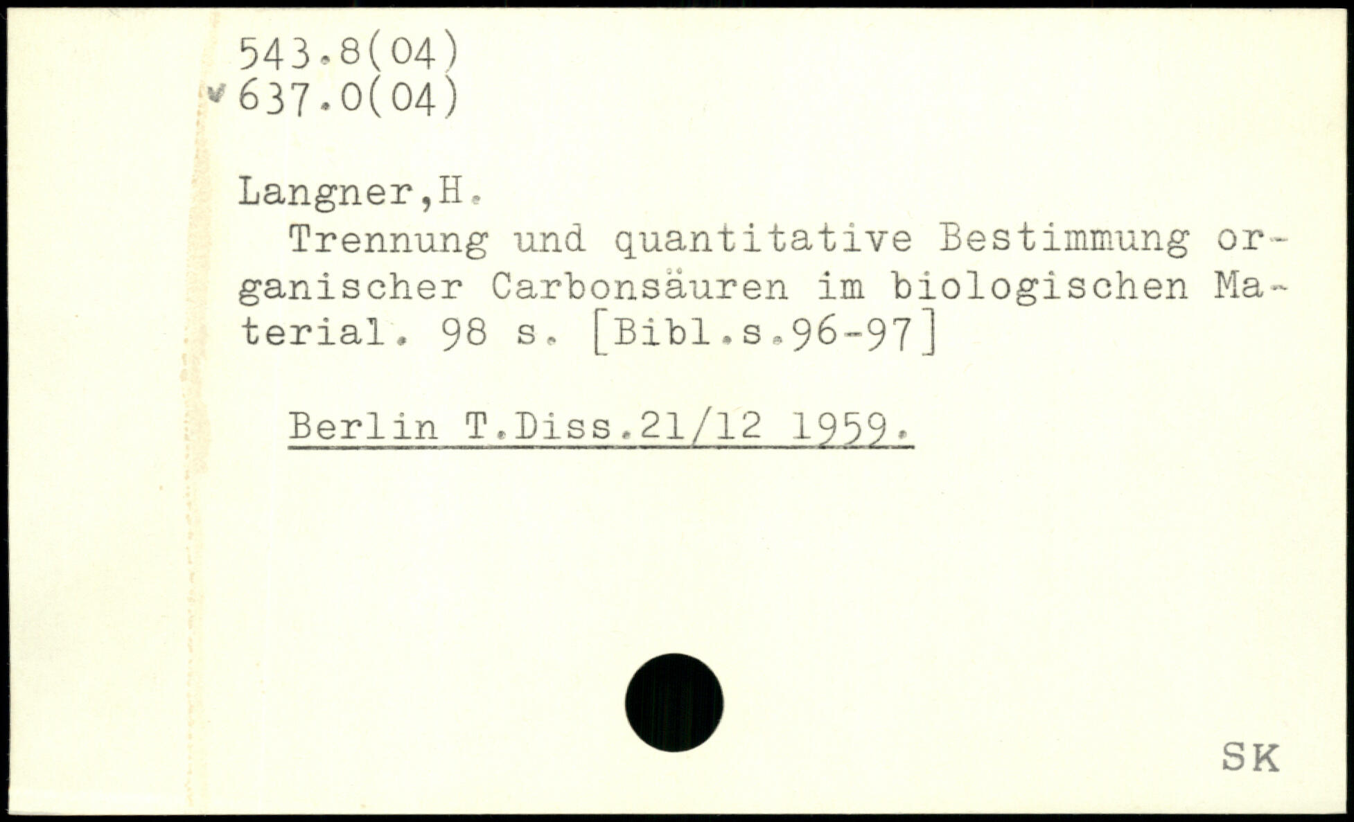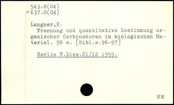 Trennung und quantitative Bestimmung organischer Carbonsäuren im biologischen Material.