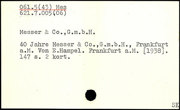 40 Jahre Messer & Co.,G.m.b.H., Frankfurt a.M. Von E.Hampel. Frankfurt a.M. [1938].