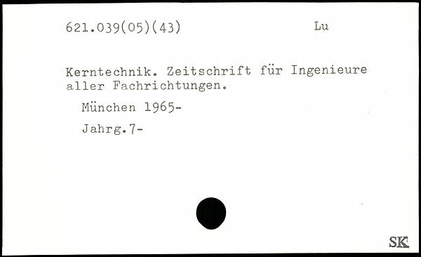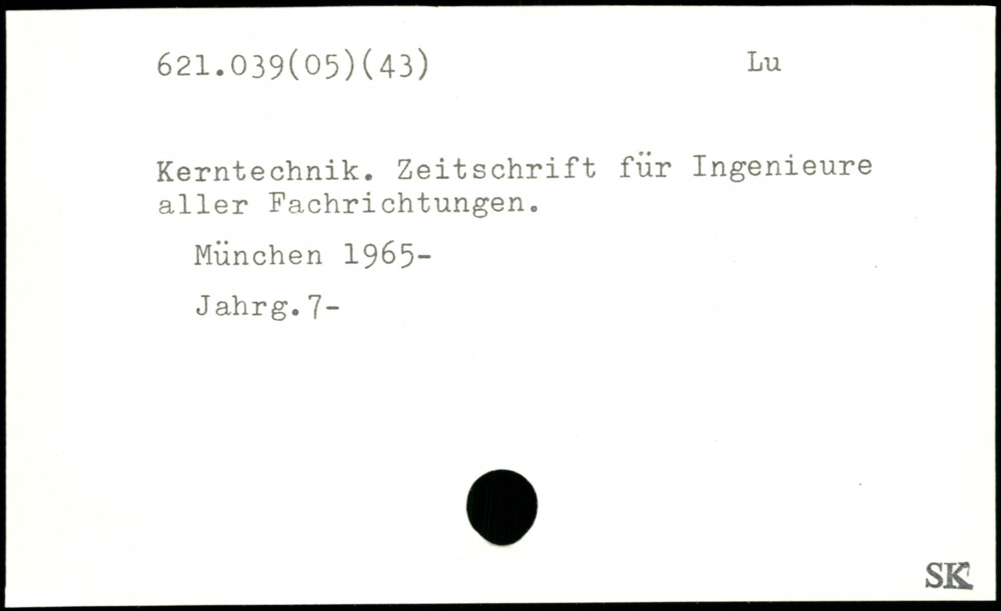 Kerntechnik. Zeitschrift für Ingenieure aller Fachrichtungen.