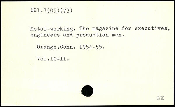 Metal-working. The magazine for executives, engineers and production men. Orange,Conn. 1954-55. Yol.10-11.