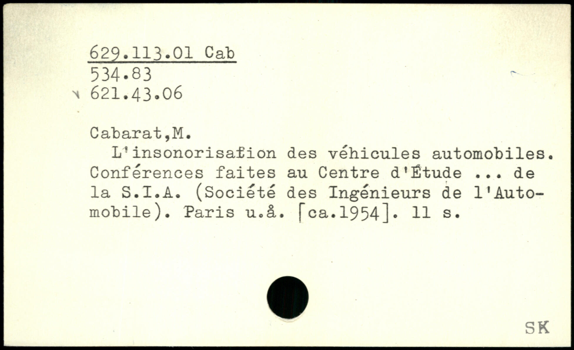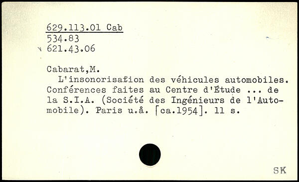 L1insonorisation des véhicules automobiles. Conférences faites au Centre d'Ëtude ... de la S.I.A. (Société des Ingénieurs de l'Automobile). Paris u.a. [ca.1954]