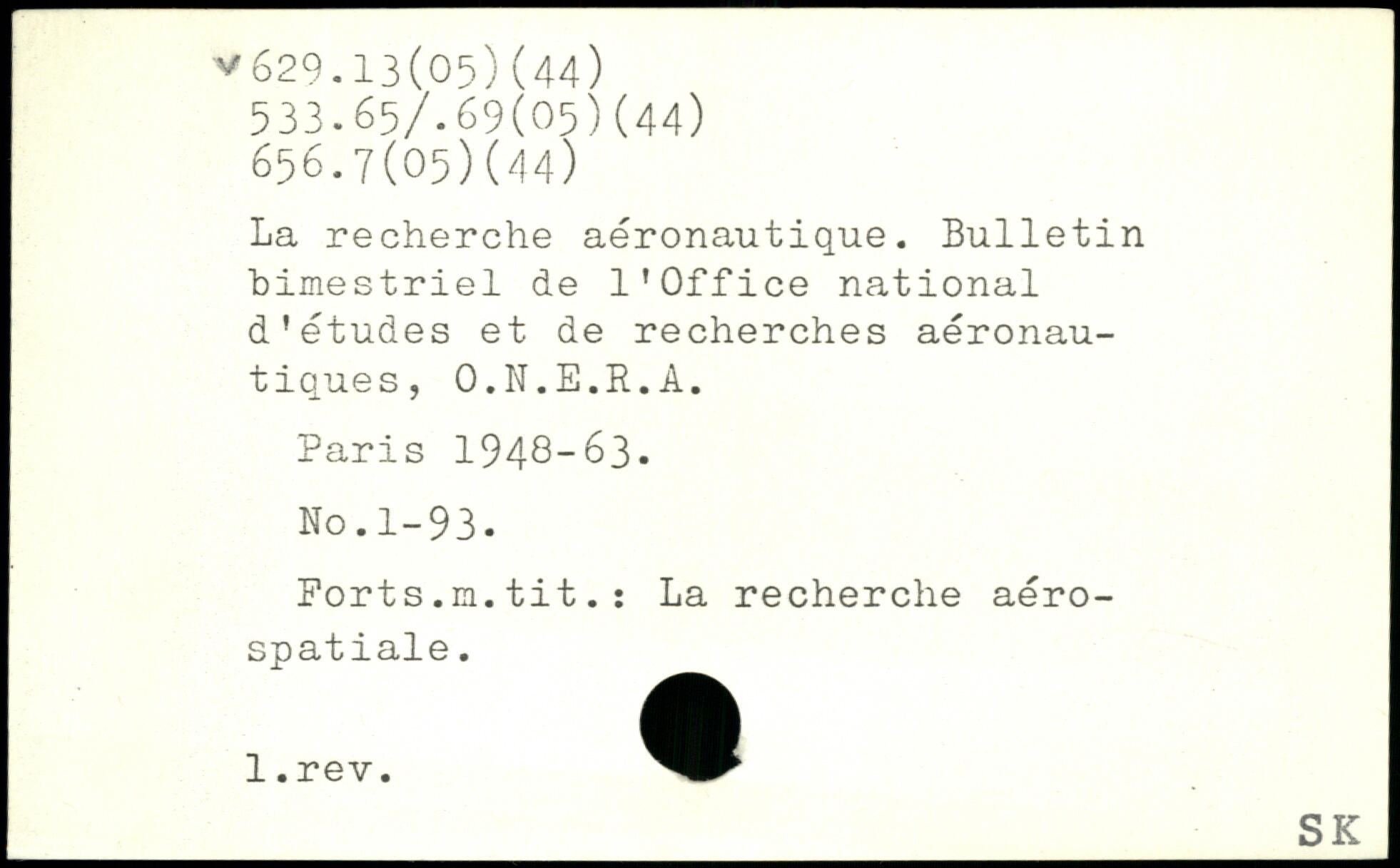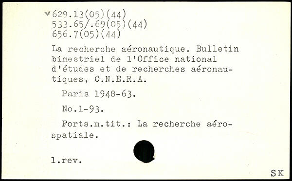La recherche aéronautique. Bulletin bimestriel de l'Office national d'études et de recherches aéronautiques, O.N.E.R.A.