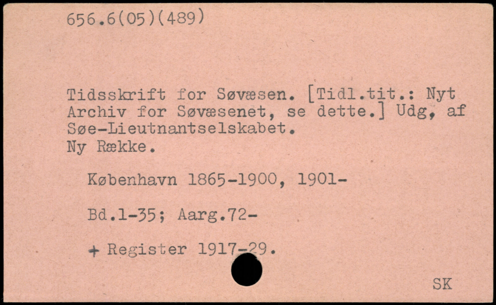 Tidsskrift for Søvæsen. [Tidl.tit.: Nyt Archiv for Søvæsenet, se dette.] Udgf af Søe-Lieutnantselskabet. Ny Række.