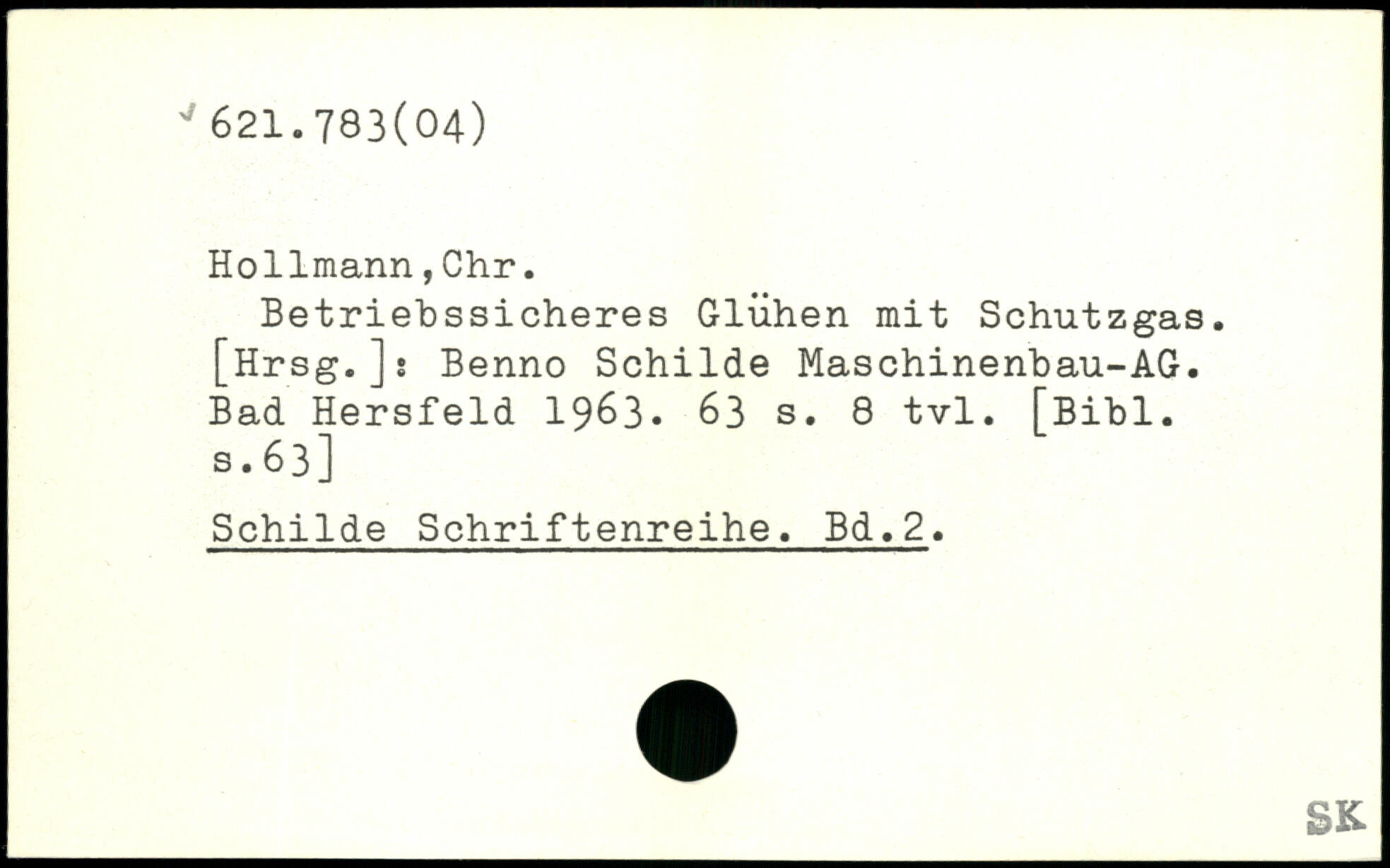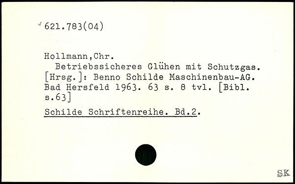 Hollmann,Chr. Betriebssicheres Glühen mit Schutzgas. [Hrsg.]: Benno Schilde Maschinenbau-AG. Bad Hersfeld 1963.