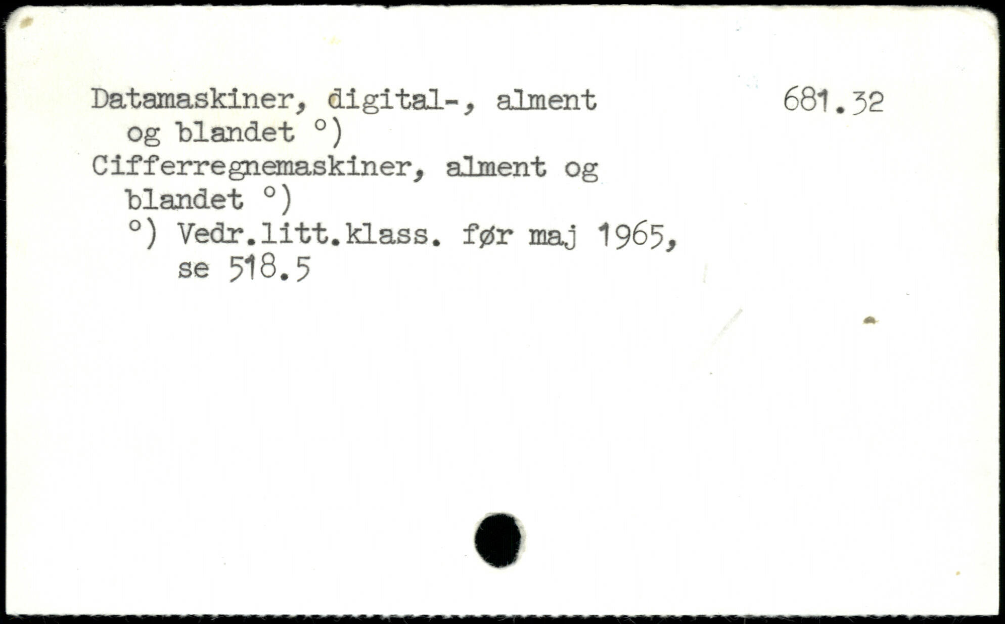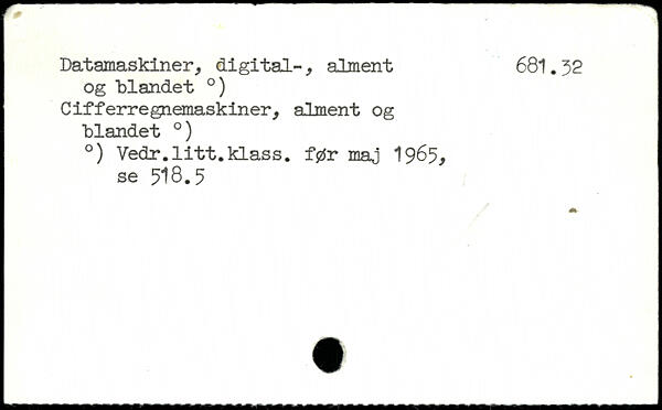 rr.----"I Datamaskiner, digital-, alment 681.32 og blandet .) Cifferregnemaskiner, alment og blandet .) .) Vedr.litt.klass. før maj 1965, i se 318.5