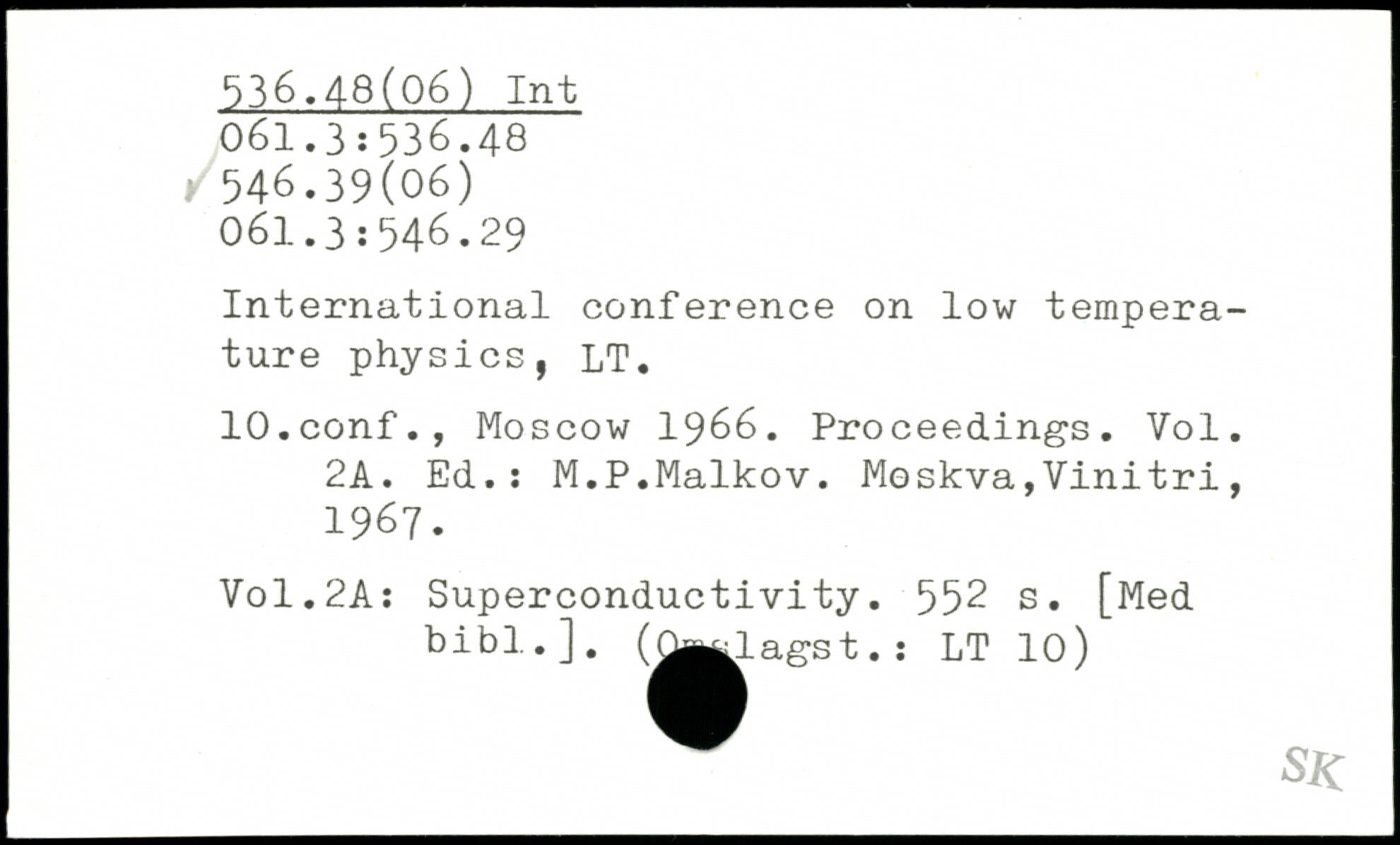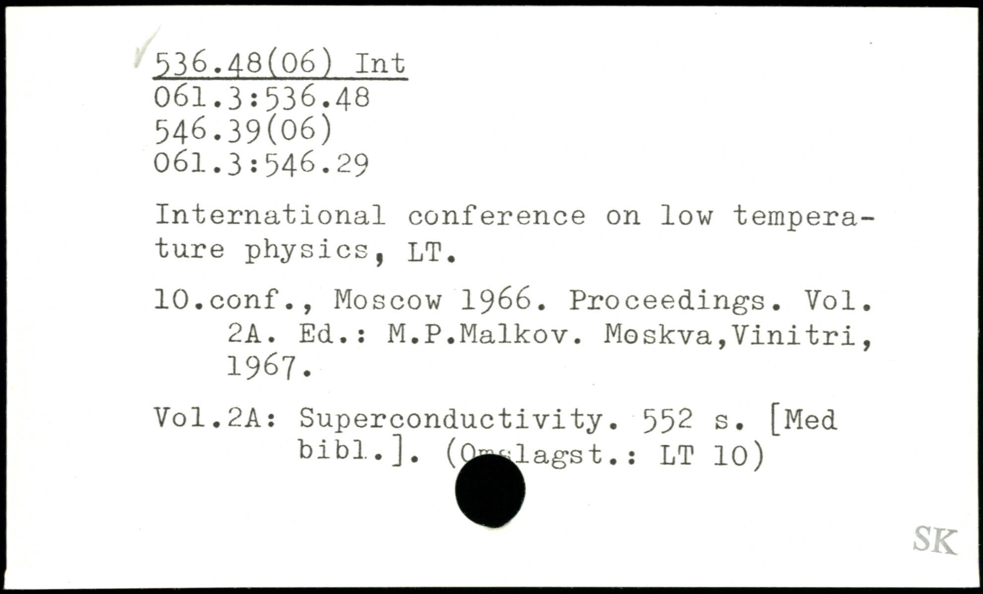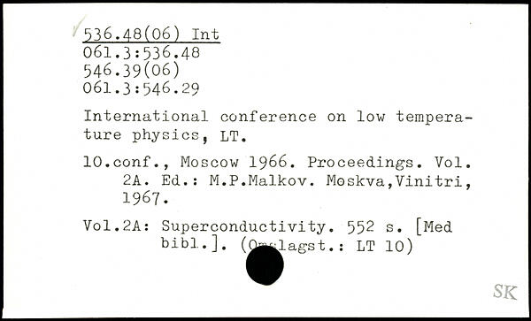 International conference on low temperature physics, LT. lO.conf., Moscow 1966. Proceedings. Vol. 2A. Ed.: M.P.Maikov.
