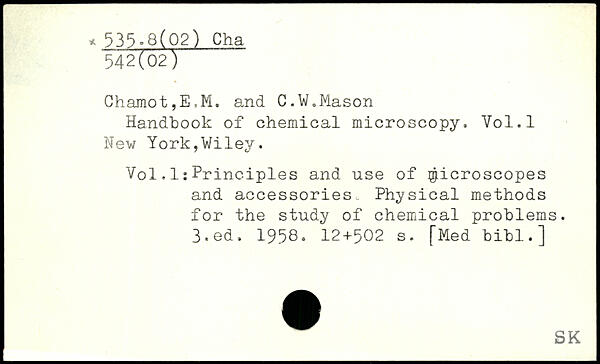 Handbook of chemical microscopy, Vol.l New York,Wiley.