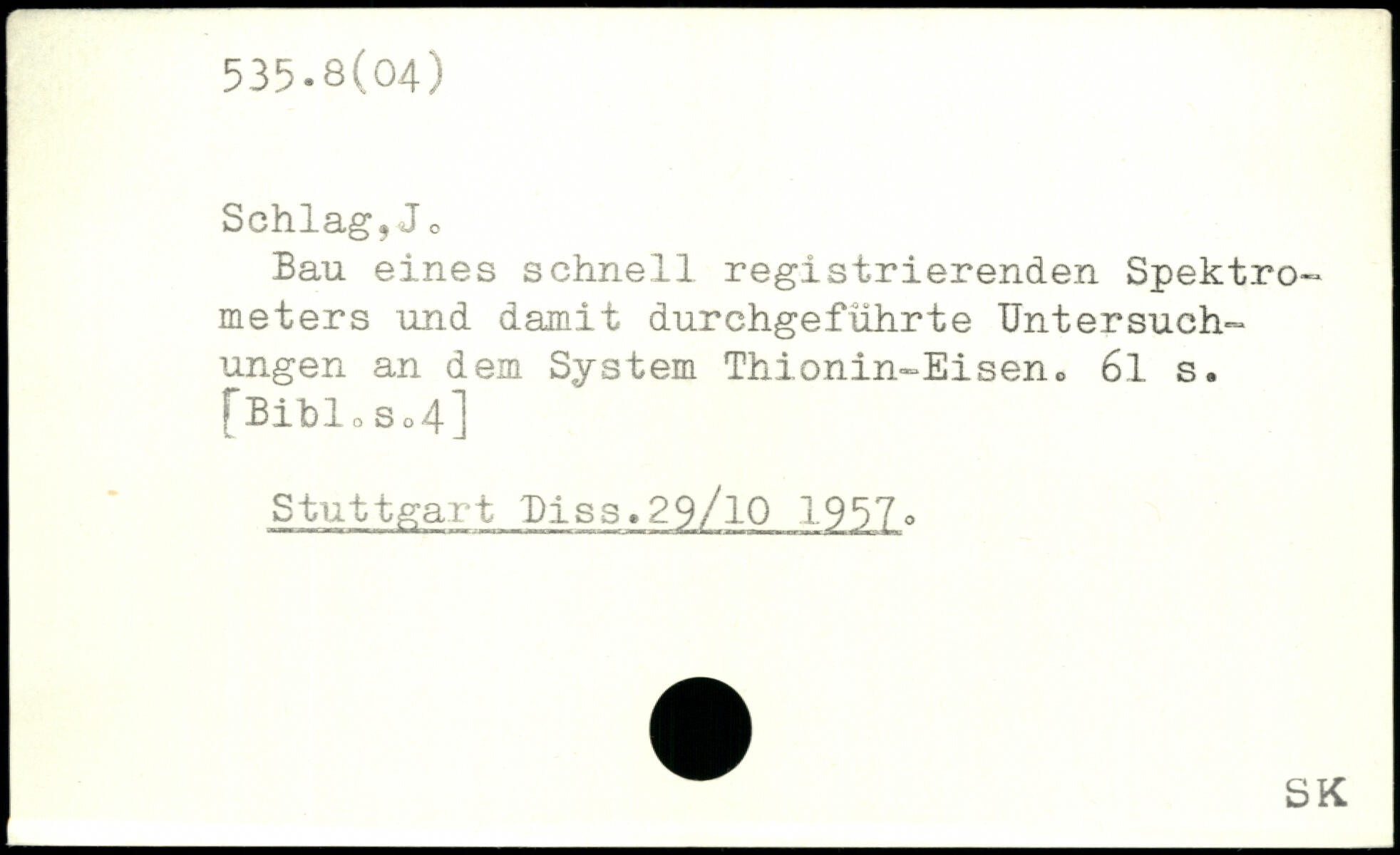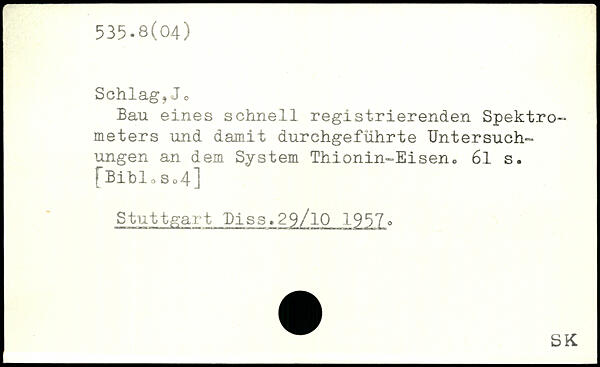 Bau eines schnell registrierenden Spektro-meters und damit durchgeführte Untersuchungen an dem System Thionin-Eisen0 6l s. fBibi0So4] Stuttgart Biss.29/l0 1957 p